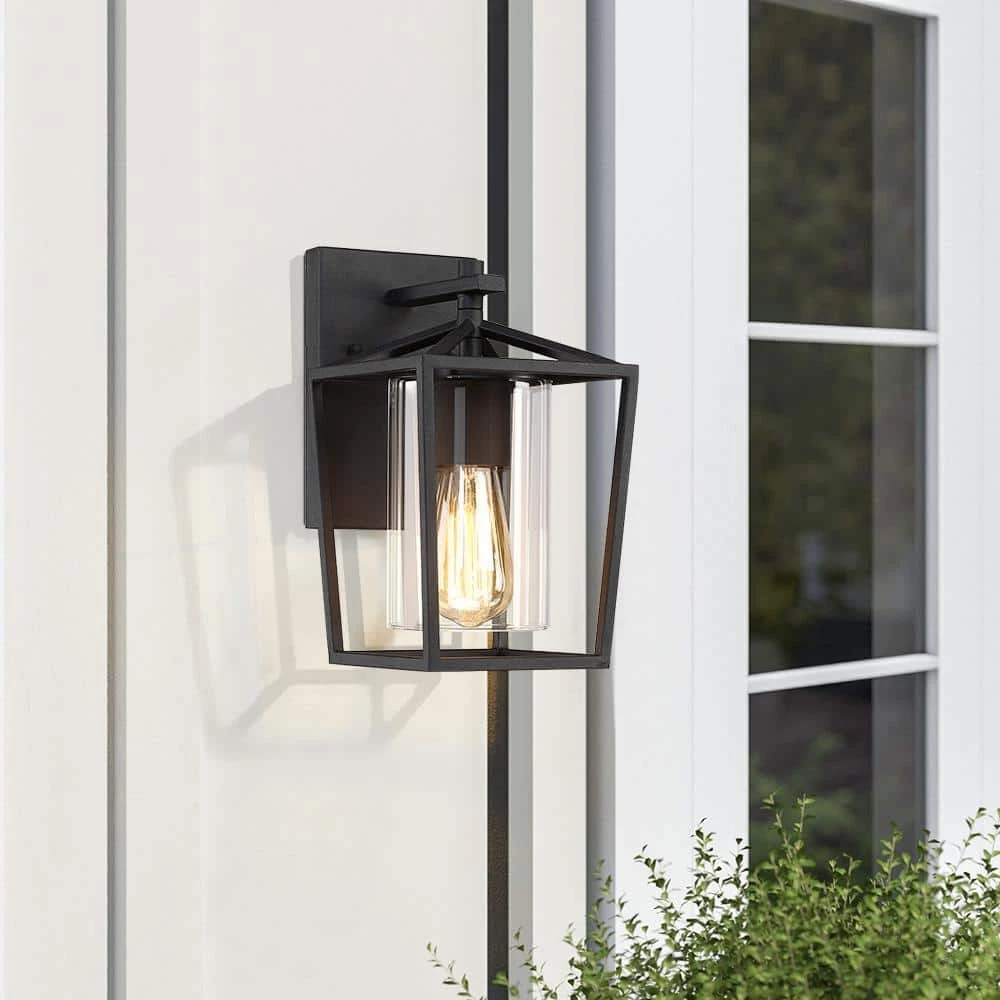 This exterior lantern lighting exhibits farmhouse style outdoor lighting with rustic, industrial appeal. Enhance your front door or patio space with the classic styling of this outdoor wall light. Highlighted by a contemporary metal birdcage design and powder coated black finish, this fixture adds a warm glow to a variety of outdoor applications. The open caged framework with clear glass cylinder exposes the light bulb and a vintage style Edison A19 bulb is recommended to capitalize on the industrial feel of the piece. Ideal for Front Porch, Patio, Garage, Deck, Balcony, Vanity etc.