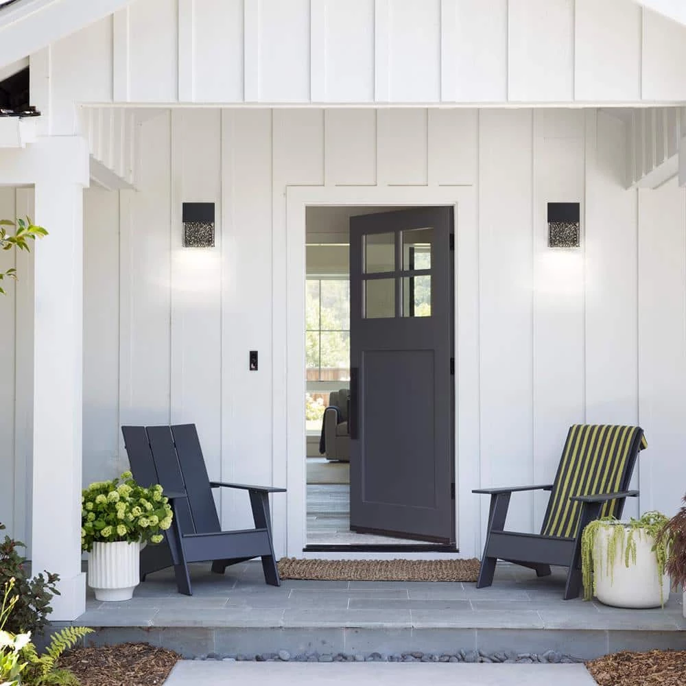 - Fixture dimensions: 6 in. H x 4.33 in. W, extends 2.9 in. from the wall, power-coated black finish