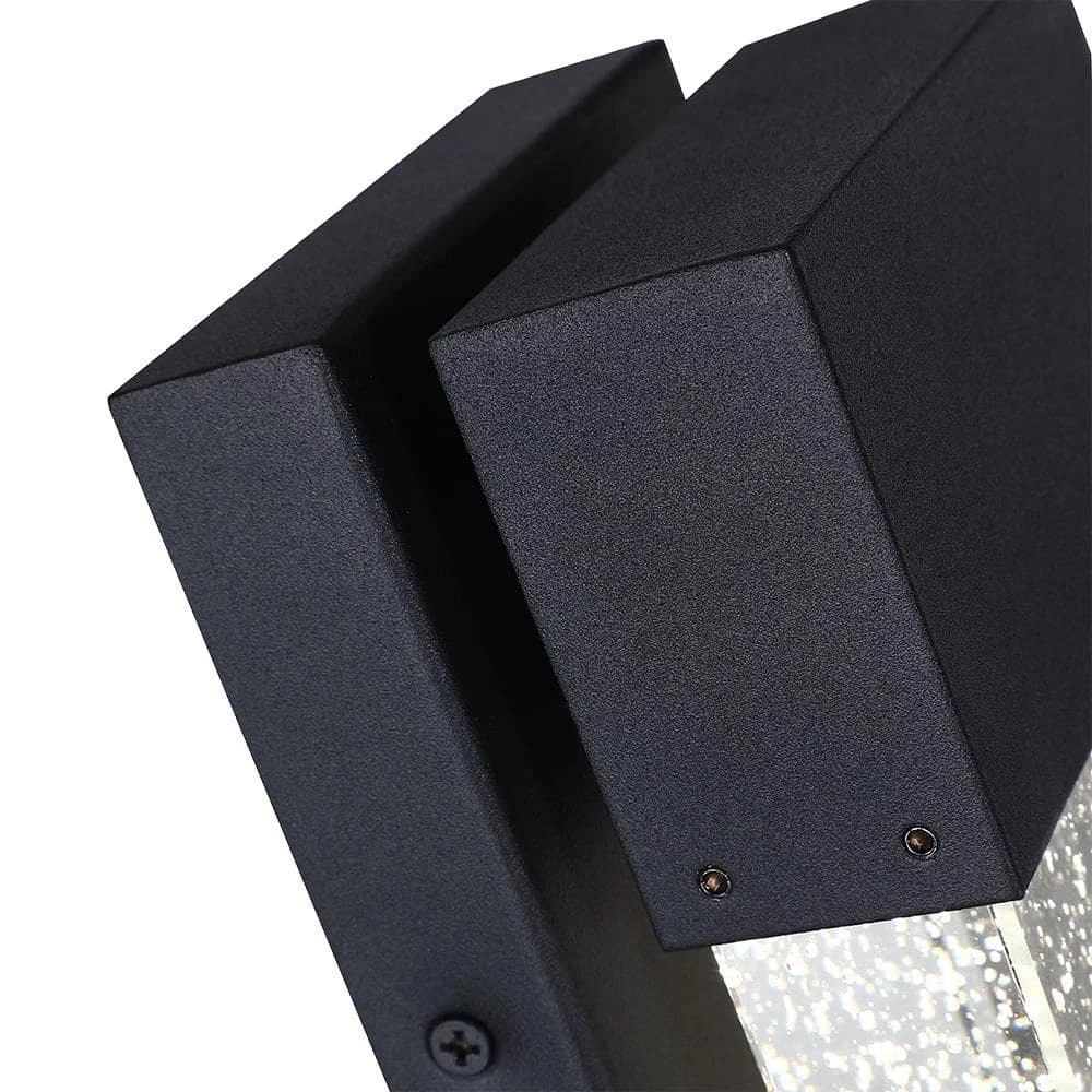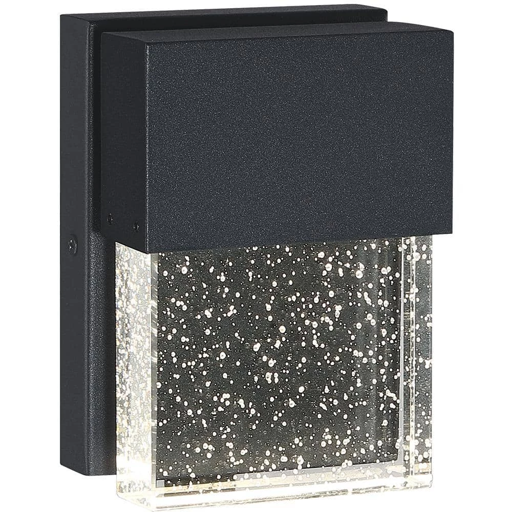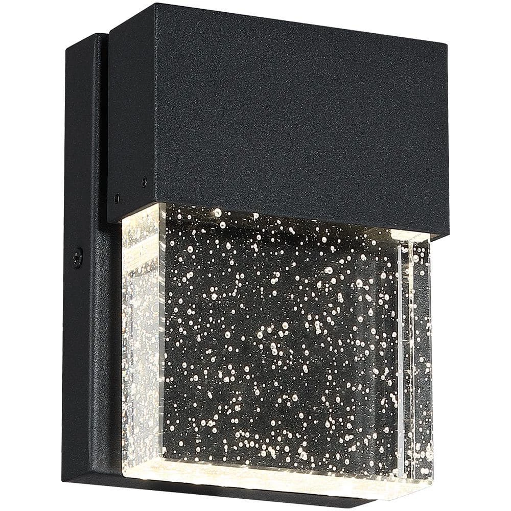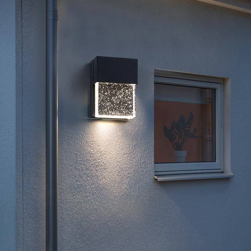 The modern LED Outdoor Wall Sconce is made of solid block of crystal glass infused with tiny bubbles to create a contemporary and industrial outdoor lighting option. Powered with modern LEDs, this sleek fixture uses far less energy than conventional bulbs and bring a sophisticated, modern look to illuminate your outdoor space with a gentle glow. This fixture is easy to install, maintenance free, can be used indoors or as an outdoor wall sconce for Front Porch, Entry light, Patio, Garage, Deck, Balcony, also good as indoor wall sconce. Also available in 10.5 in. high version.
