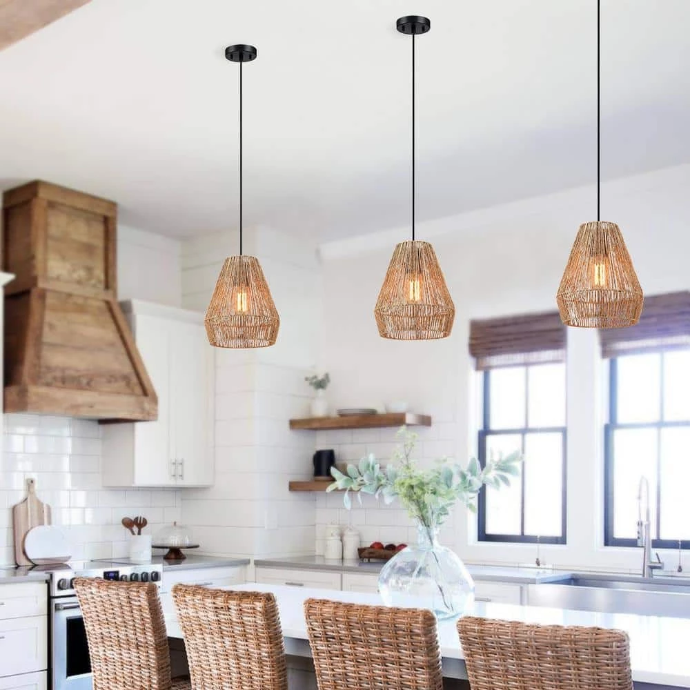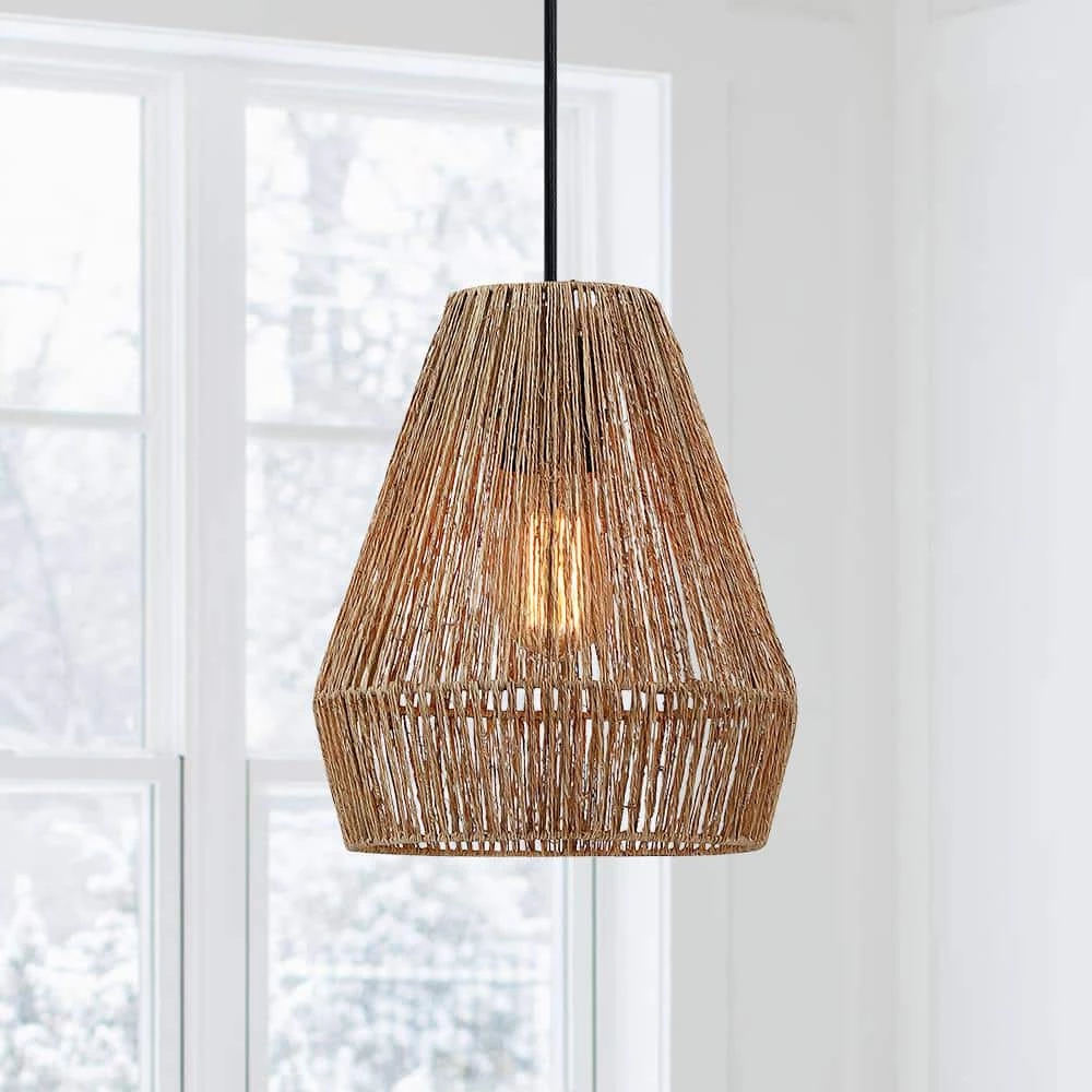 Make a style statement with the coastal-inspired TRUE FINE organic pendant -Light, crafted of natural hand-woven jute rope, is the unique blend of Eclectic nautical and rustic vintage style. Filtering the -Light from within, each piece creates a play of -Light and shadow in a room, adding an inviting ambience. This collection can work with a variety of boho decors and even work in homes with coastal or farmhouse styling, which is an ideal selection for over your kitchen island, your hall way or foyer, or suspended above your kitchen breakfast bar, dinning rooms or bedrooms of any kind.