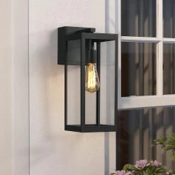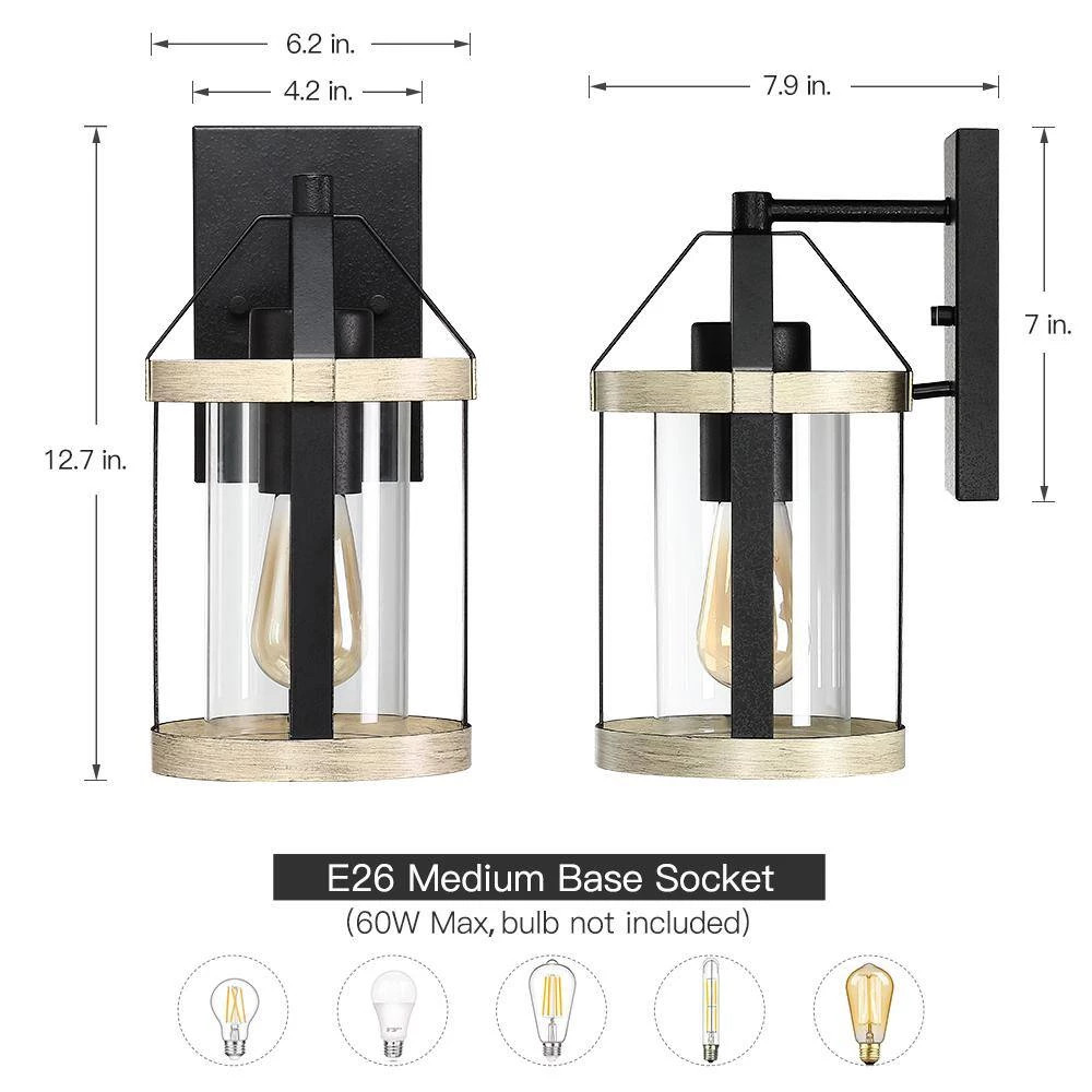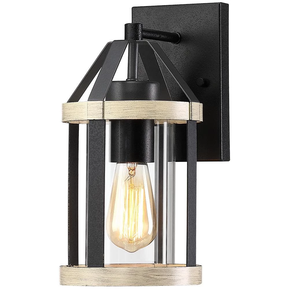 Add rustic charm and warm, welcoming illumination to your outdoor space with the 1-light outdoor wall light. 2-tone textured black and driftwood finish highlight the beauty of this traditional design. Featuring a clear cylinder glass shade at its center and a tow-tone cage outside, it exudes vintage appeal that could be easily enhanced by a Edison bulb (not included). Ideal enhancement for traditional homes as well as modern-day outdoor settings, from farmhouse to retro-industrial, great for Front Porch, Patio, Garage, Deck, Balcony etc.