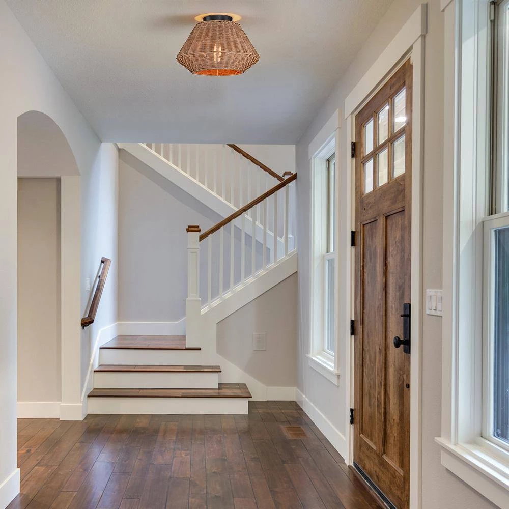 Make a style statement with the coastal-inspired TRUE FINE organic semi flush mount ceiling light, crafted of natural rattan, is the unique blend of Eclectic nautical and rustic vintage style. Filtering the -Light from within, each piece creates a play of -Light and shadow in a room, adding an inviting ambience. This collection can work with a variety of boho decors and even work in homes with coastal or farmhouse styling, which is an ideal selection for hallway, entryway, stairway, door way, or a foyer to bring warmth to a living room or bedroom.