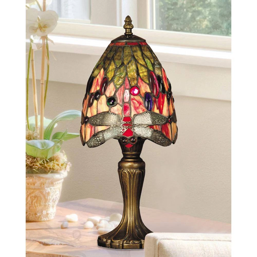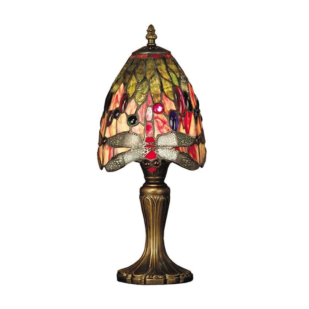 Taking their inspiration from Tiffany’s love of nature, our artisans have created the Vickers table lamp. 120 pieces of art glass and art glass jewels represent a weeping willow style tree in greens, pinks, reds, blues and amber. Tiffany’s signature dragonfly runs along the bottom rim of the shade, exquisitely recreated in a fine filigree overlay. The simple metal pedestal base, finished in antique brass provides the right contrasting balance for this table lamp, which will work well in any room of your home or office.