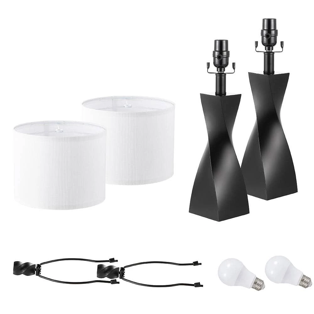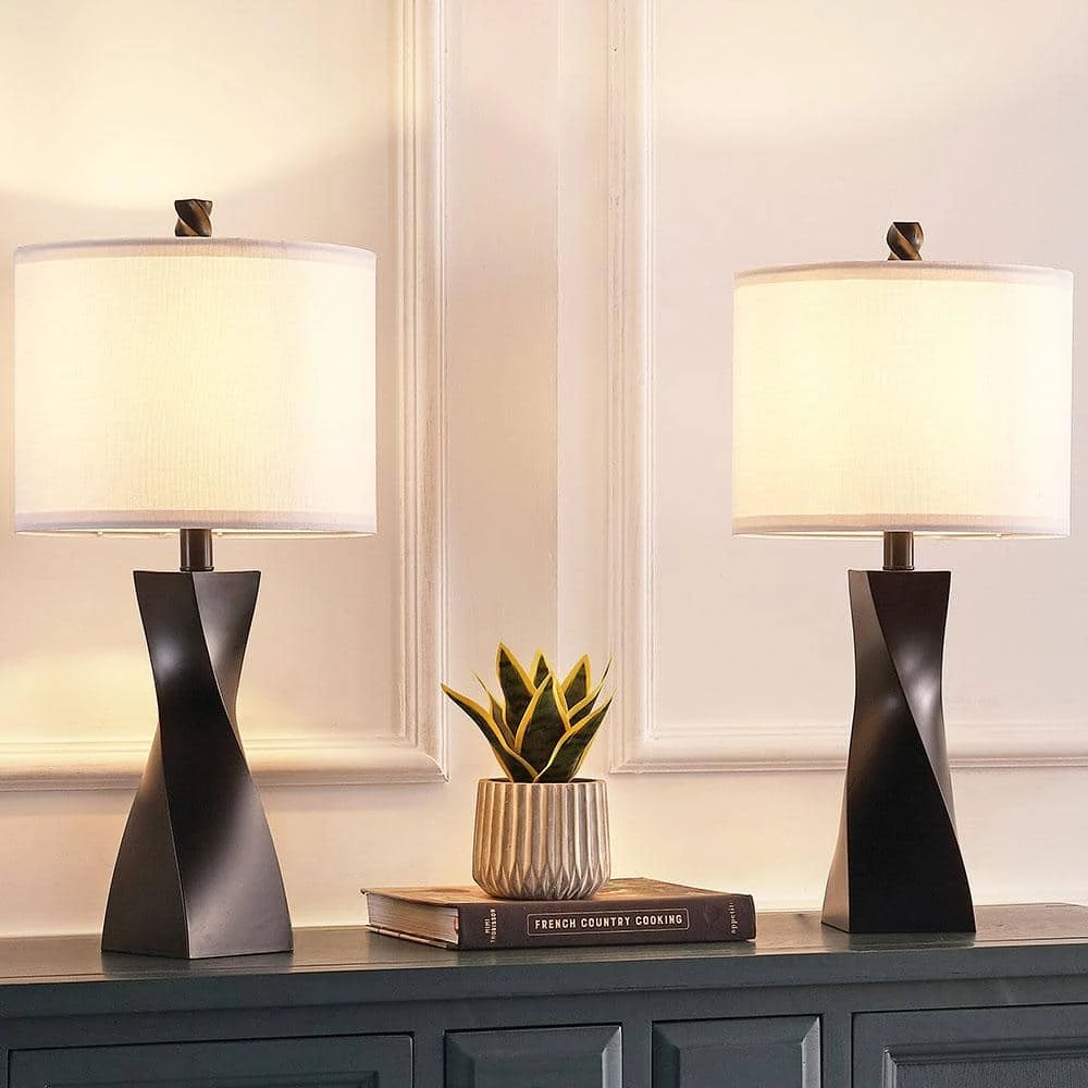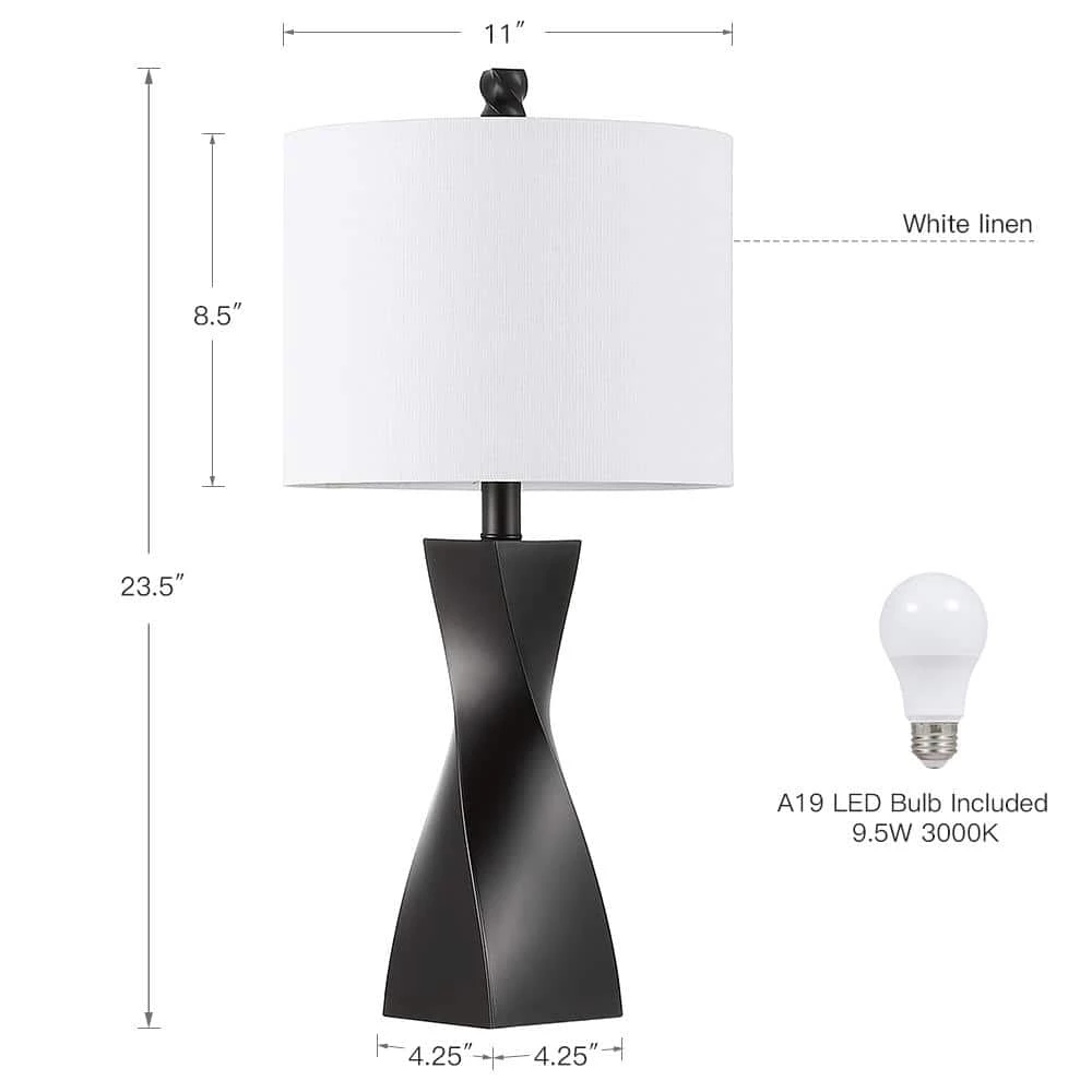 Traditional yet Modern TRUE FINE Designer table lamp is perfectly proportioned with round white linen shade. In addition, 2 energy-saving 9.5-Watt Led bulbs are included. The modern twisted lampbase of this lamp make it completely versatile and a good fit for rustic living or sleep spaces, fits in any room decor from contemporary to classic, is ideal for a console table in an entryway or a pair of end tables in a bedroom, living or family room.