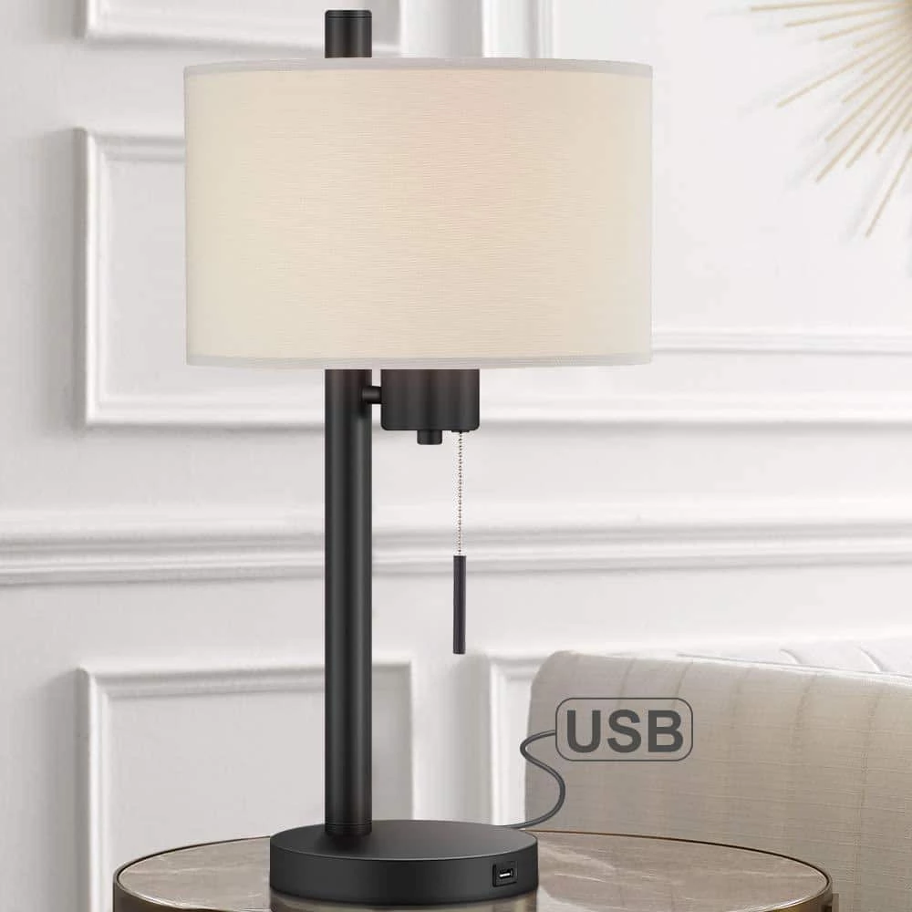 Clean but not simple style. A combination with modern material and plated surface creates very contemporary feelings, then the white linen shade adds back a little casual touch, it actually fits in most of room decors in any space when needed. 23 in. overall height makes a medium table lamp for nightstand, study desk, end table, side table or wherever needed. USB port allows you to charge your phone or other devices without being busy at finding more outlets while using reading lights. The clean lines and finish of this lamp make it completely versatile and a good fit for vintage rustic or contemporary living or sleep spaces, fits in any room decor from modern to classic, is ideal for a console table in an entryway or a pair of end tables in a bedroom, living or family room.