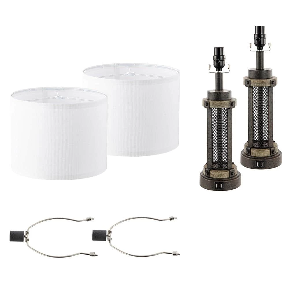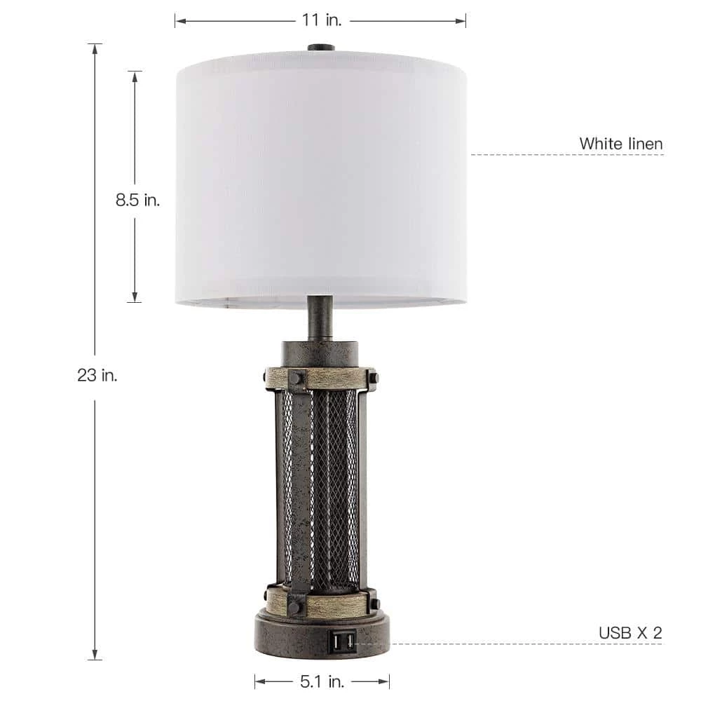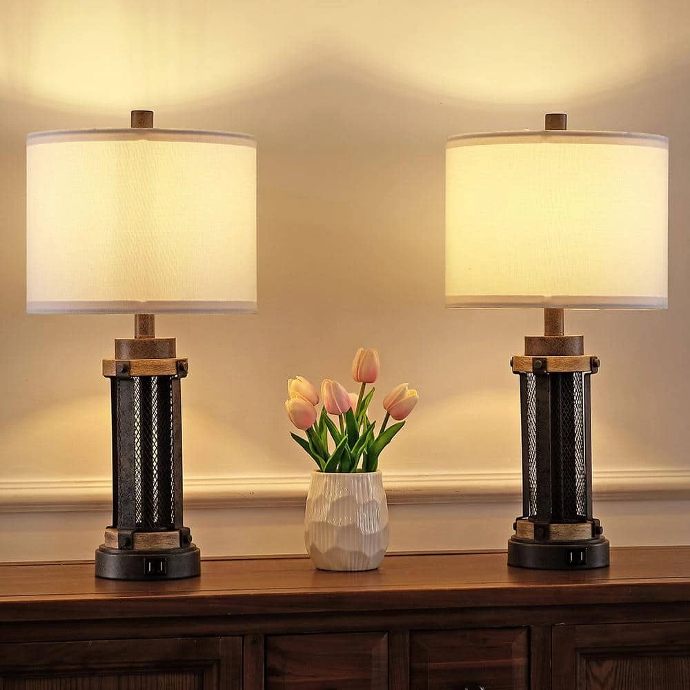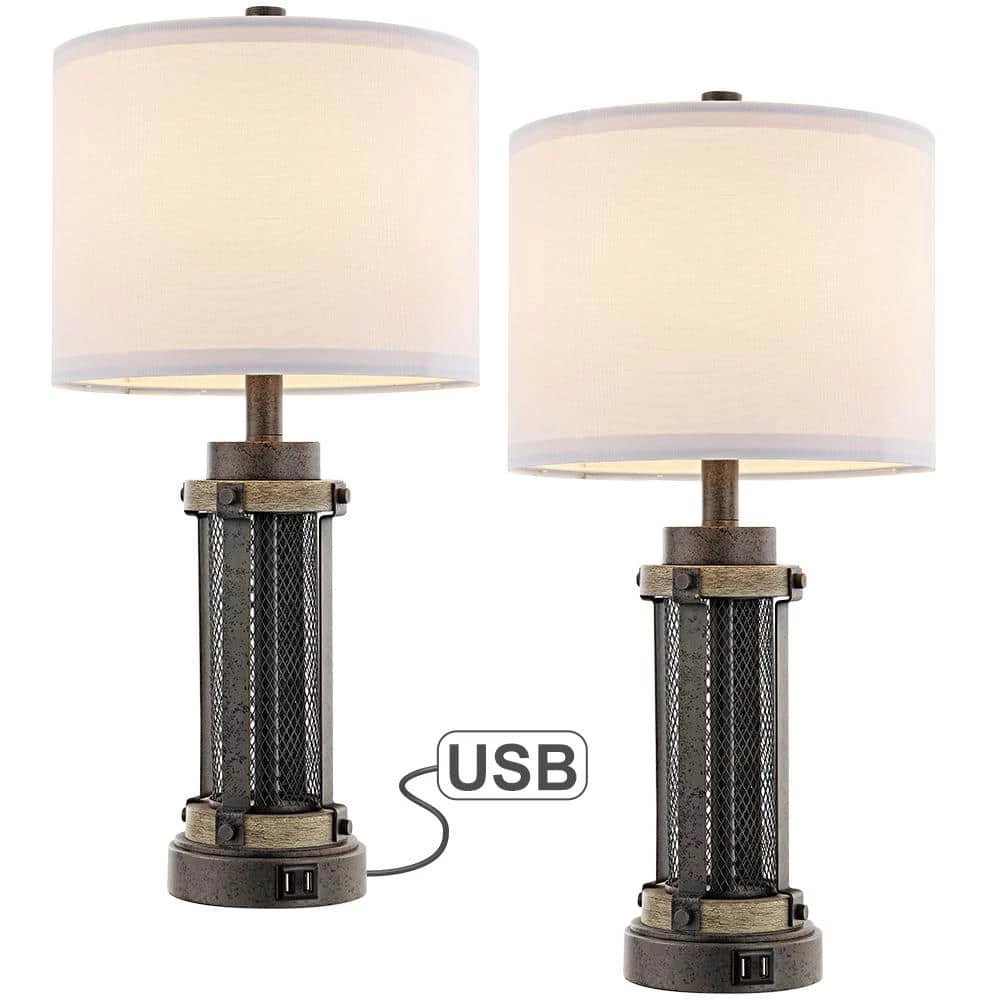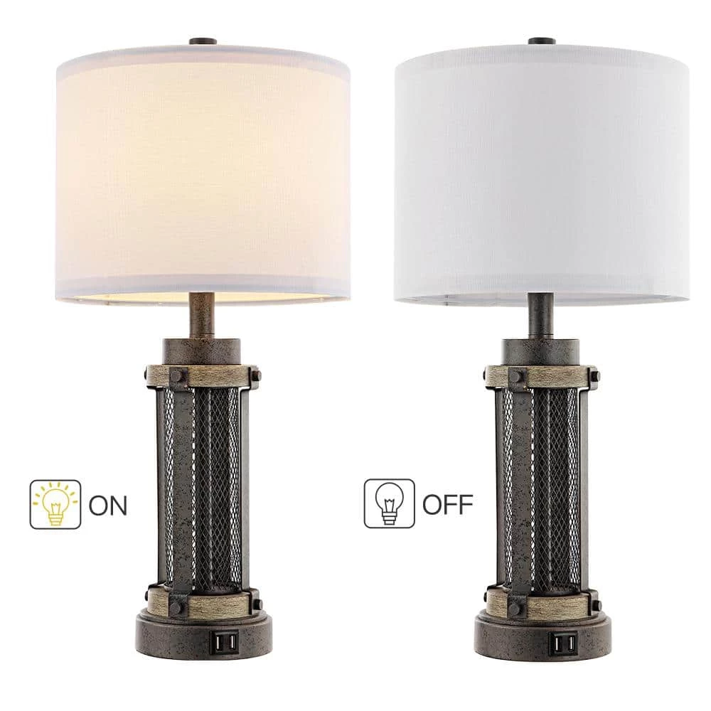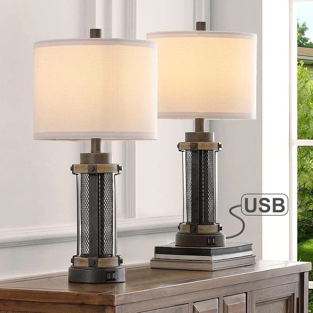Industrial yet Modern TRUE FINE bedside table lamp is perfectly proportioned with round white linen shade. Besides each lamp has 2 built-in USB charging ports, 5-Volt 2.1 Amp for you to charge your mobile phones, iPads, laptops, tablets, kindle and other electronics at the same time, also save your space from cluttered electric cords and chargers, a nice choice for bedside table lamp for bedrooms. The bronze mesh metal cage design of this lamp make it completely versatile and a good fit for farmhouse rustic or contemporary living or sleep spaces, fits in any room decor from vintage to classic, is ideal for a console table in an entryway or a pair of end tables in a bedroom, living or family room.