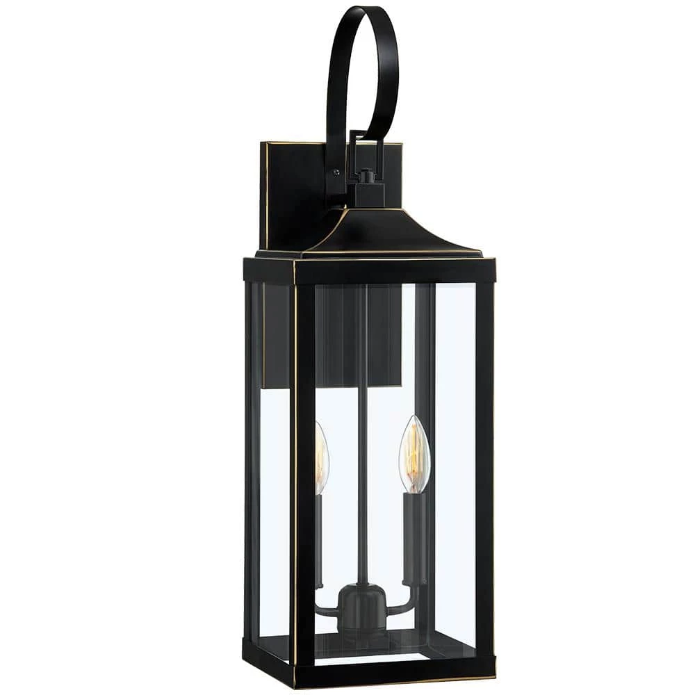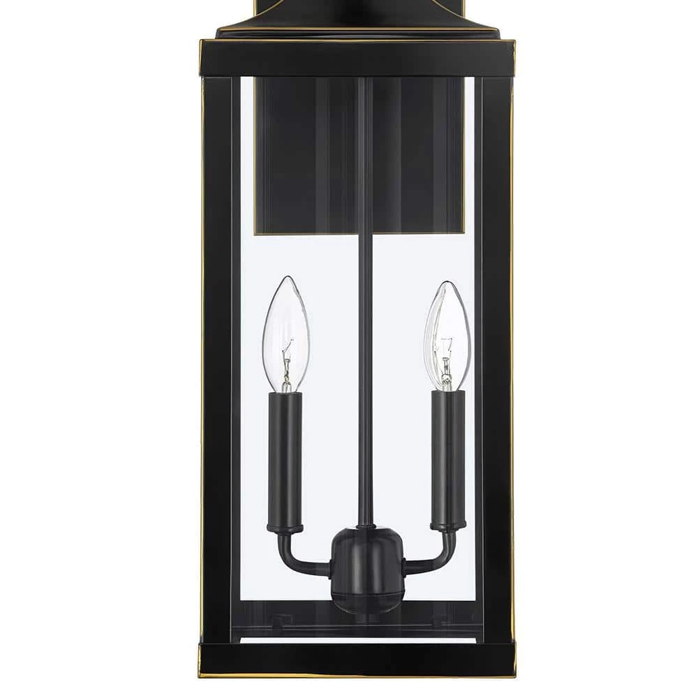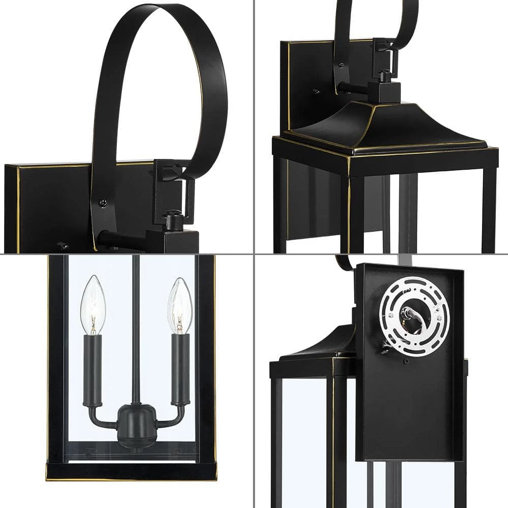 Illuminate your front door or garage with this 2-light outdoor classic new traditional Exterior lantern lighting fixture. It’s rated wet locations, and its sleek frame is made from metal in a bronze finish that complements your decor classic to rustic. It features 4 clear glass panels with its long rectangular shape enclosed in a bronze and sleek clean-lined framework. Pairing the modern design with Candelabra Base bulbs is recommended to fully illuminate the glass and complement the overall aesthetic. Ideal for Front Porch, Patio, Garage, Deck etc. Plus, it’s compatible with a dimmer switch, so you can make the most out of your lighting.