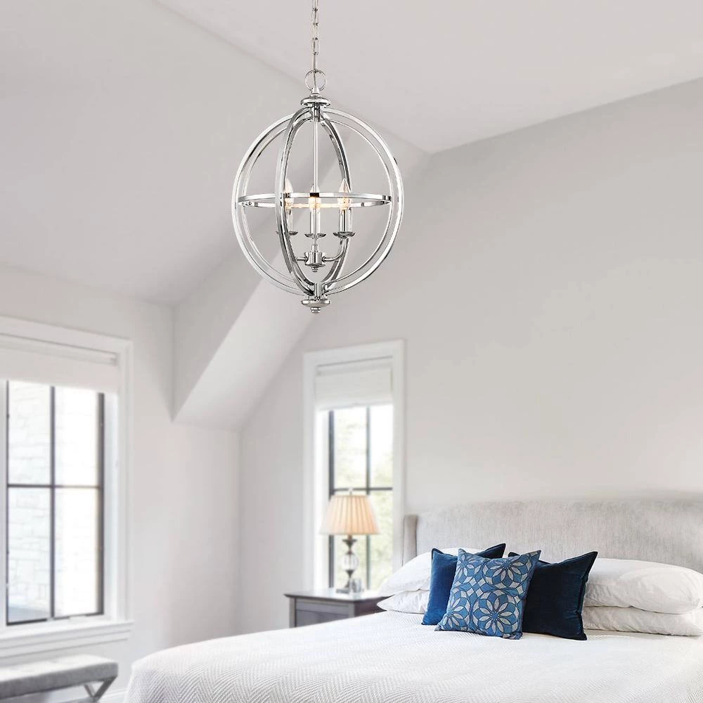 A modern color takes on an classic and traditional style, this silver caged lantern chandelier bridges the gap between modern and traditional designs. Its clean-lined frames and accents offers sleek and urban attitude-perfect for over dining room table and kitchen island. The moderate size also makes it an ideal small chandelier pendant light for bedroom, foyer and living room for your to customize you room ambience.