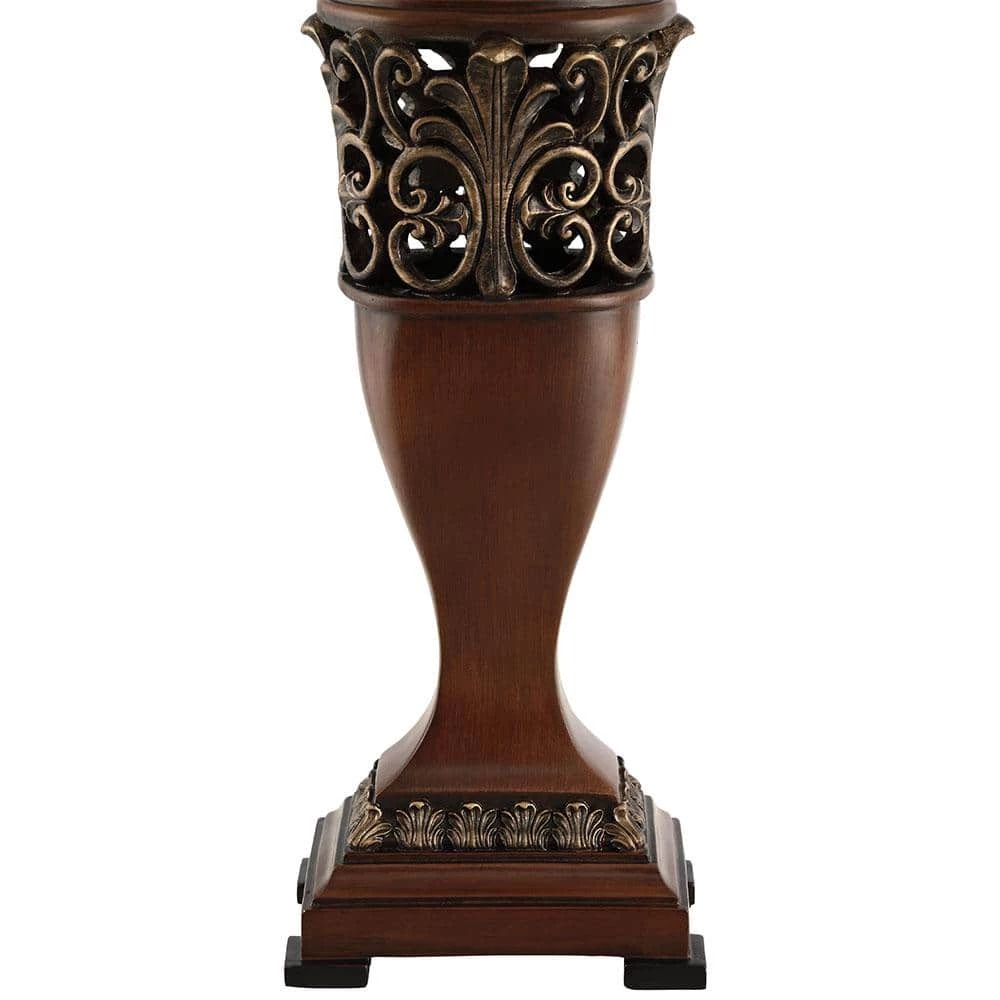- Finish:gold bronze and wood 2-tone finish with carved leaf detailing ivory shades with decorative finials