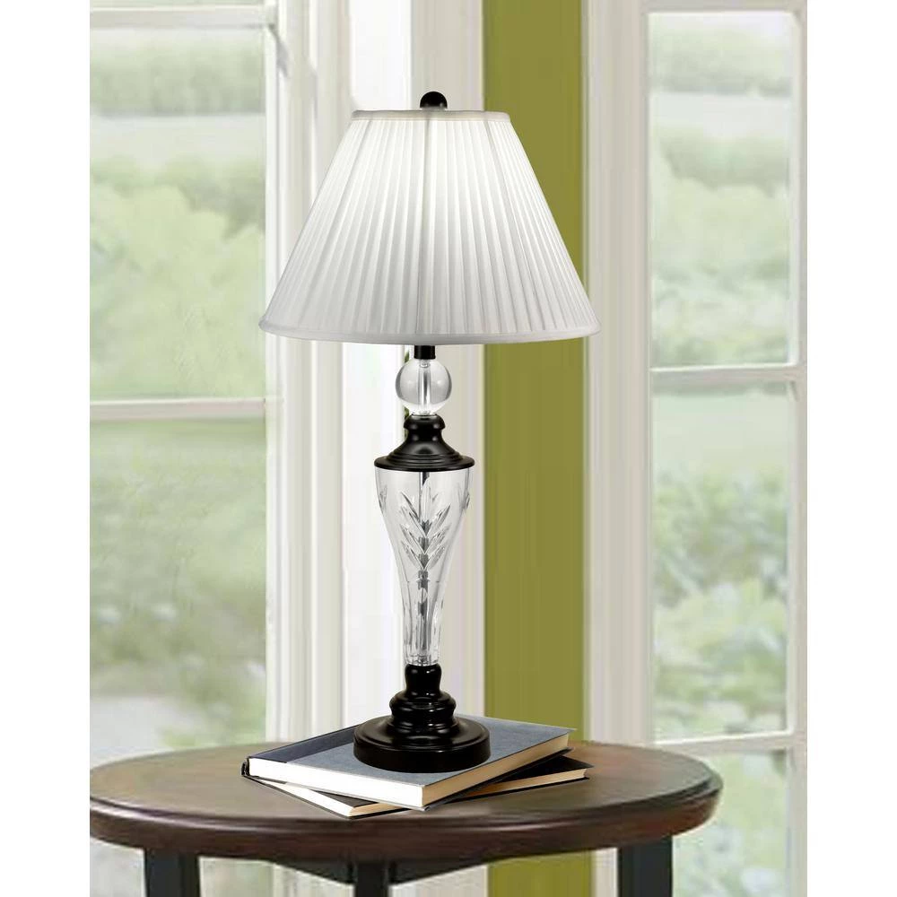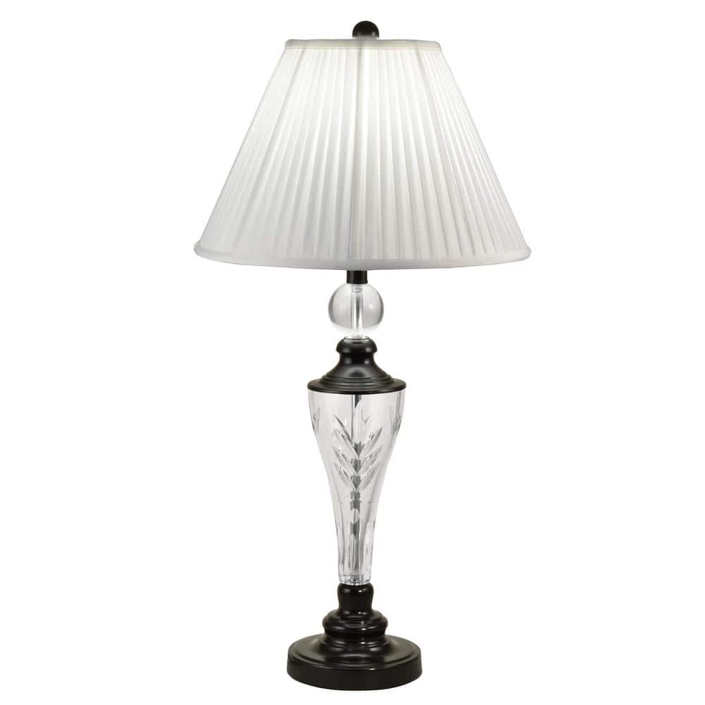 Our Gaya 24% Lead Hand Cut Crystal Table Lamp is a contemporary classic with a modern flair that will easily enhance and enliven your home’s decor. The tall fixture features a center column that is wrapped with an elongated taper of hand cut 24% lead crystal with an allover leaf faceting that will sparkle beautifully when the lamp is lit. We added a smooth orb, also crafted of 24% lead crystal just under the light source for even more sparkle and shine. The metal base is finished in contemporary Ebony Black and features a round pedestal, steep flange and matching vase cap. We paired Gaya with a flared shade of pleated softback fabric in white and added a crystal finial. Perfect for almost any room in your home our Gaya Hand Cut 24% Lead Crystal Table is destined to become a treasured favorite.