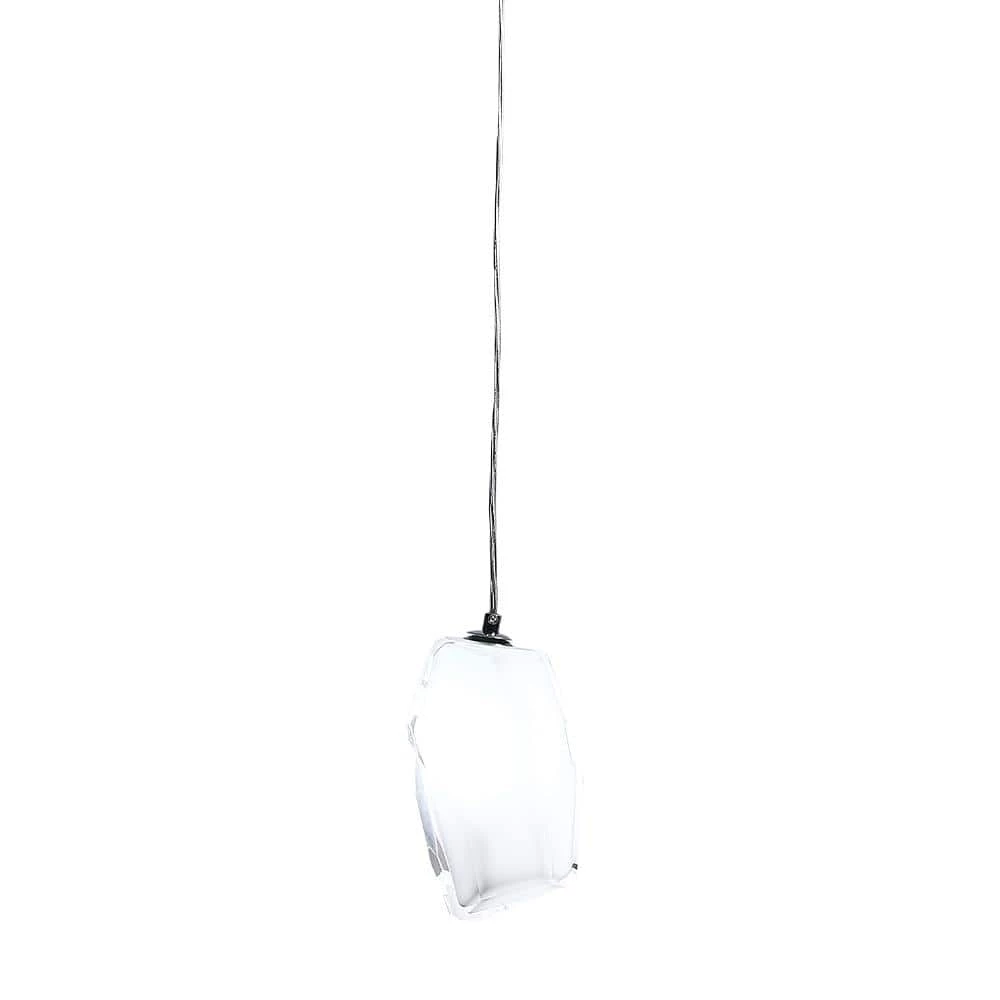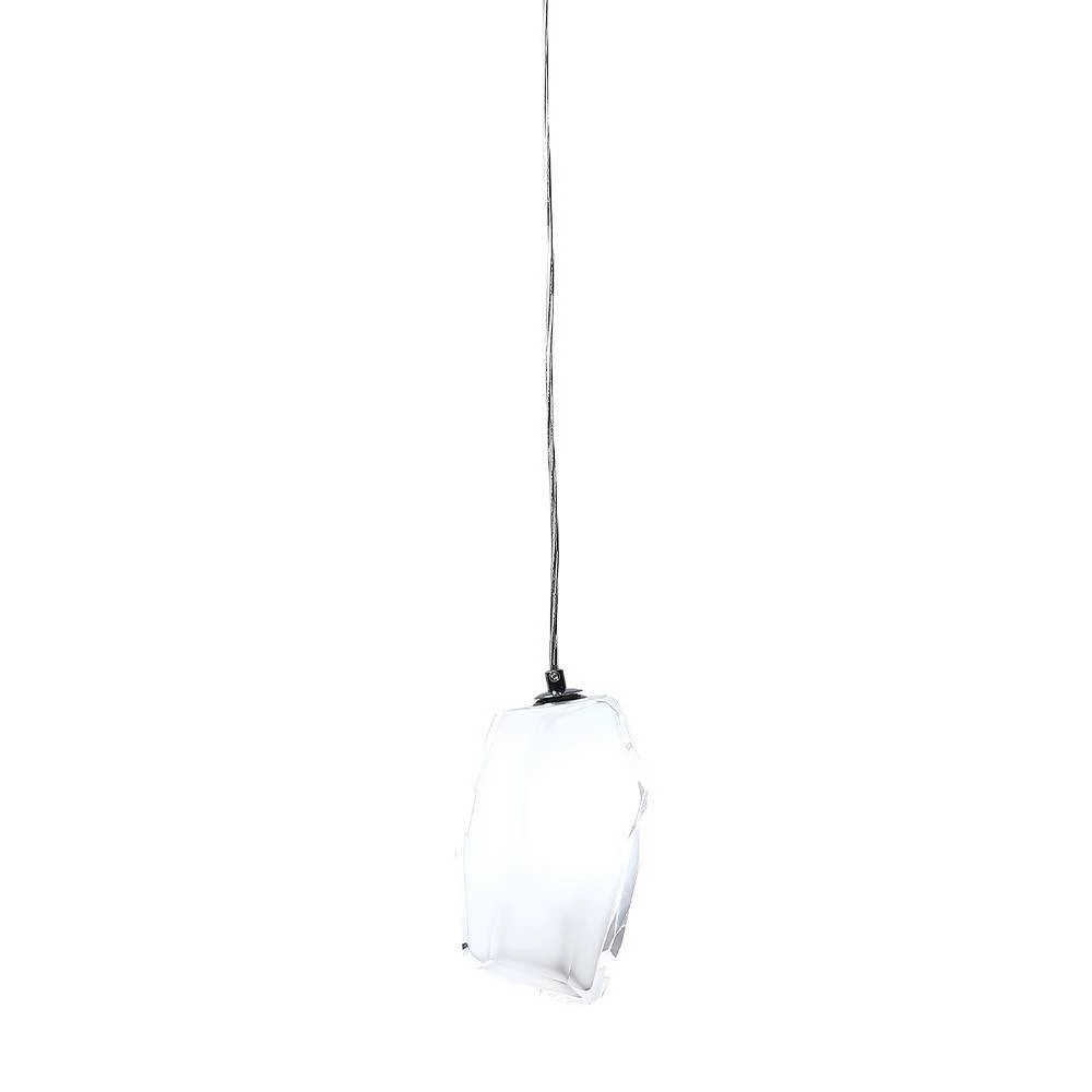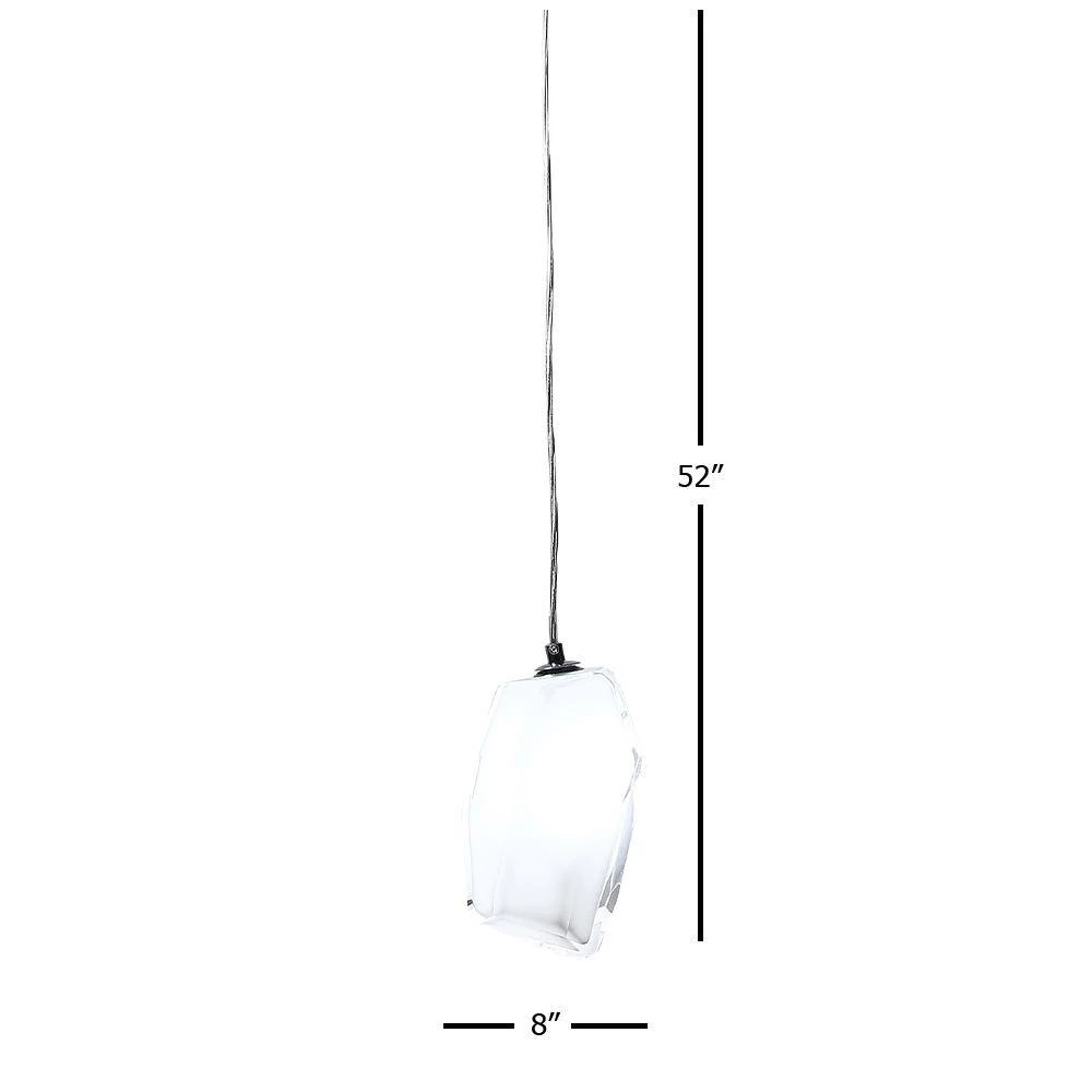 Always at the cutting edge of home design trends, we are pleased to present our Altair White Handcrafted Art Glass Mini Pendant. The breathtaking fixture features a jewel shaped shade with irregular edges in crisp bright white that is crafted using Favrile art glass first developed by L.C. Tiffany. Favrile glass is crafted by embedding the color within the glass itself. This handcrafting can cause variations in color, size, and texture, which means that no 2-pieces are exactly alike. The pendant hangs from a round metal ceiling canopy and wire tube that are finished in lustrous Polished Chrome to enhance the jewel like beauty of the glass. The hanging cord can be adjusted for height. An innovative way to illuminate a bar, breakfast nook or island, try hanging our Altair White Handcrafted Art Glass Mini Pendant in multiples (and multiple colors) for an up to the-minute look your family and friends will enjoy for-years to come. NOTE: Due to the nature of handmade art glass, colors, sizes and patterns may vary slightly.