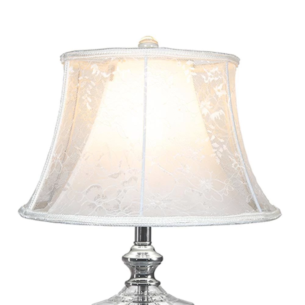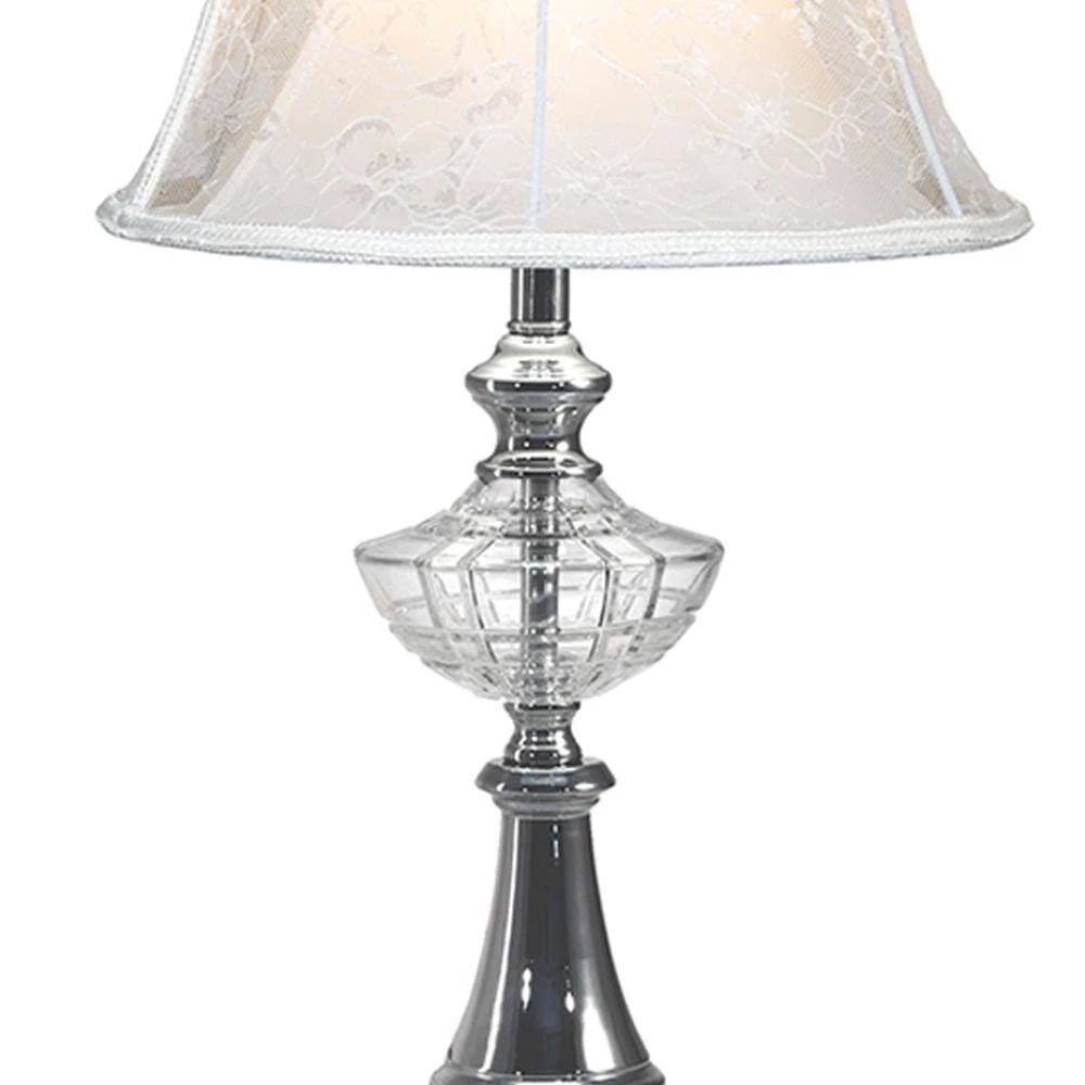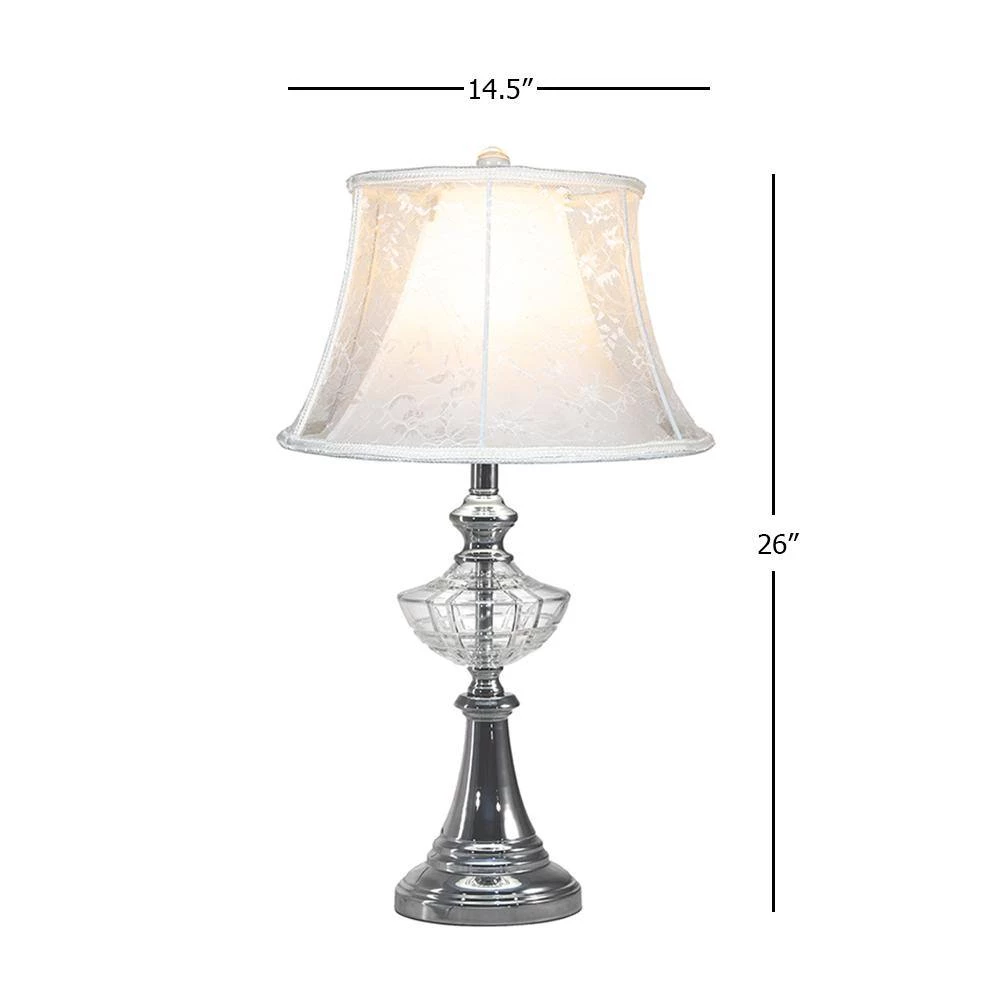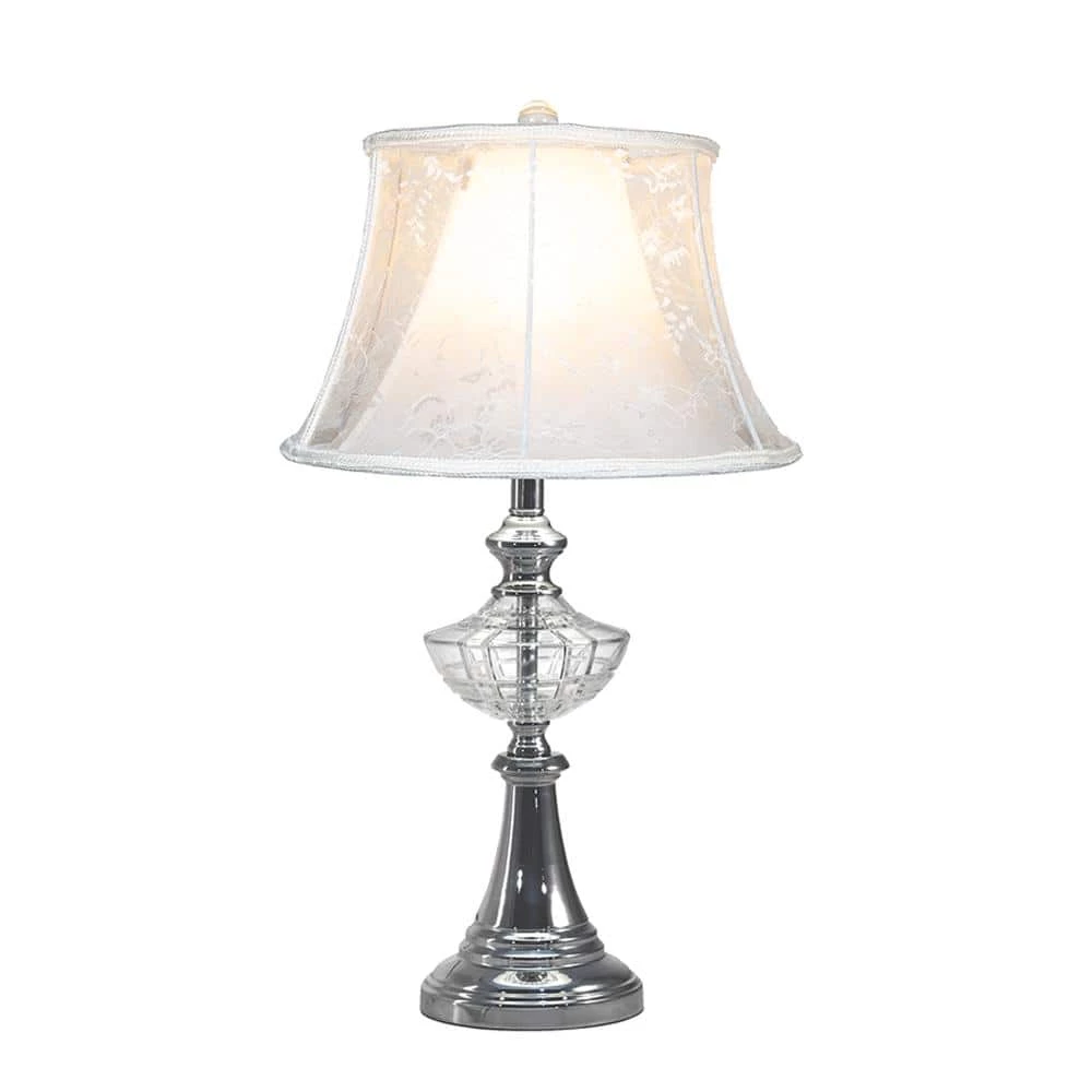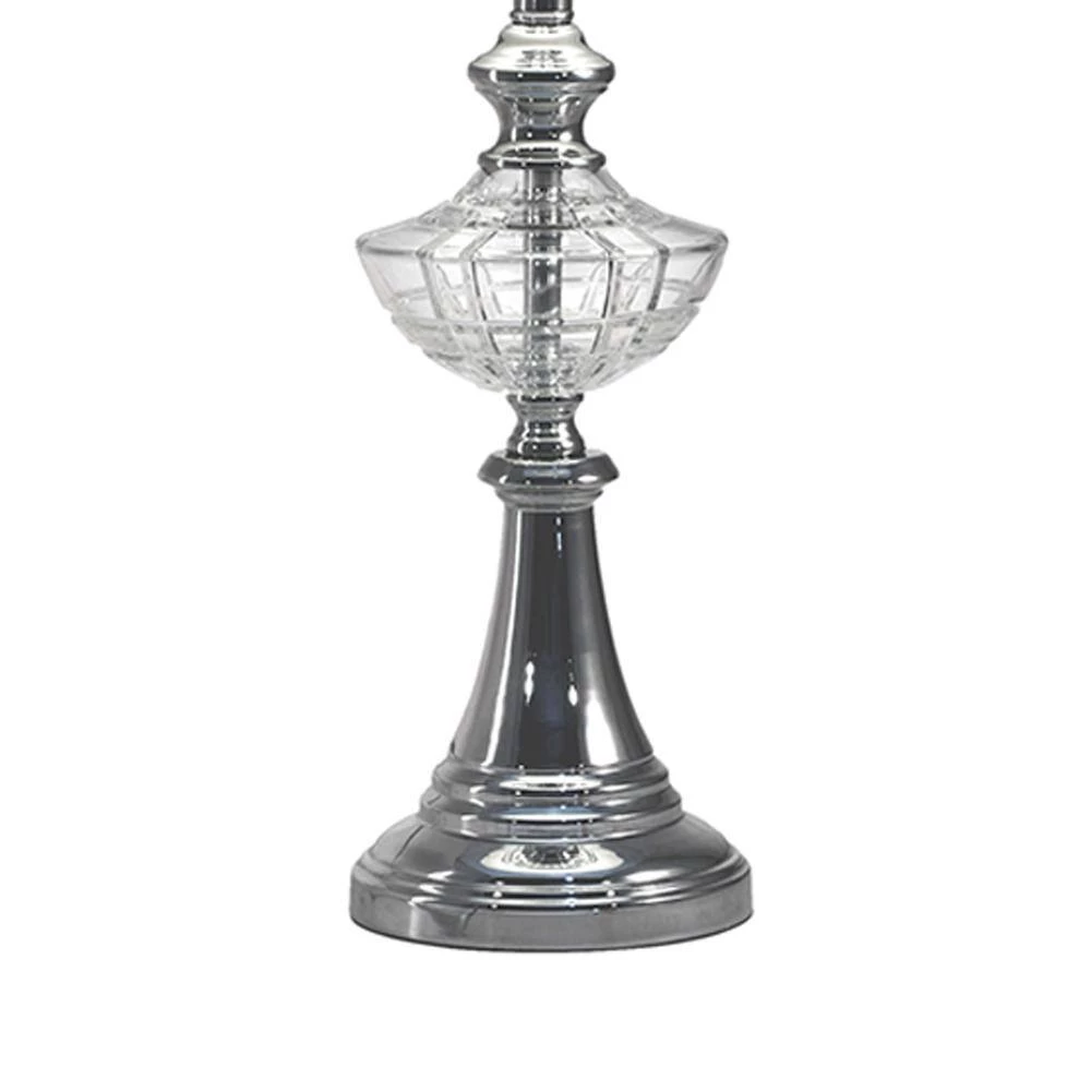 Our sleek Avery Crystal Table Lamp adds the perfect amount of upscale chic to any decor style. The center column features a flared urn crafted of 24% lead crystal that is faceted in an uncomplicated crosshatch pattern. The metal base is finished in gleaming Polished Chrome and features an elongated flared flange base. We topped Avery with a flared shade in crisp white fabric, which allows it to easily assimilate into any room. A perfect fixture on nightstands or end tables, our Avery Crystal Table Lamp is destined to become a cherished family heirloom to be passed from one generation to the next.