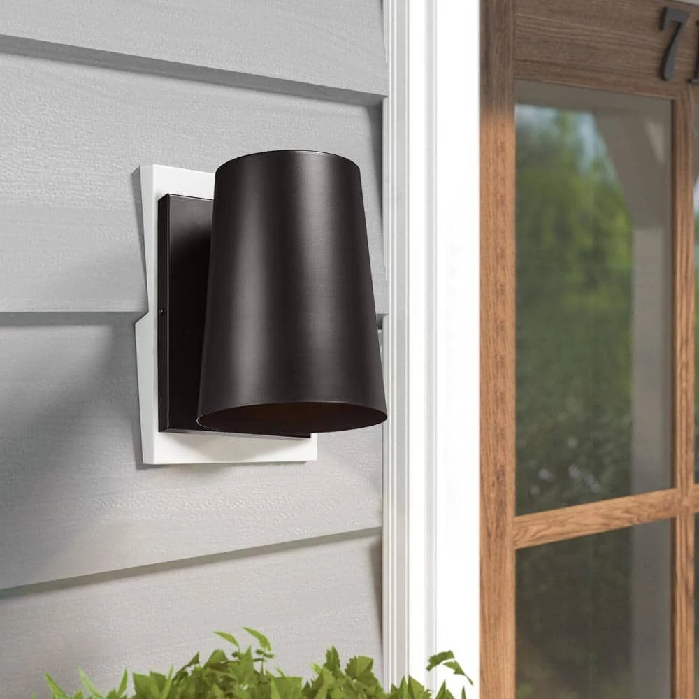 Inspired by modern industrial and barn light designs, this outdoor wall light comes in a durable steel cone-shaped shade, painted bronze for a classic look. It features a wide shade that directs light downward, making this a Dark Sky-friendly design. Great for Front Porch, Patio, Garage, Deck, Balcony, Vanity, also good as indoor wall sconce.