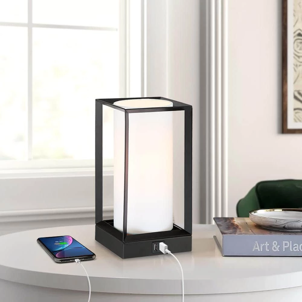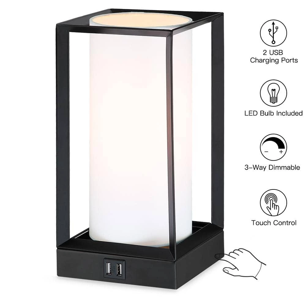 Simple yet Sophisticated modern small table lamp with great functions: Touch 3-way switch and 2 build-in USB ports. It offers 3-level brightness options(Low, Medium, High), has 2 built-in USB charging ports, 5-Volt 2.1 Amp for you to charge your mobile phones, iPads, laptops, tablets, kindle and other electronics at the same time, also save your space from cluttered electric cords and chargers. in addition, a LED bulb is included which is 6-Watt 2700K. A nice choice for bedside table lamp for bedrooms.