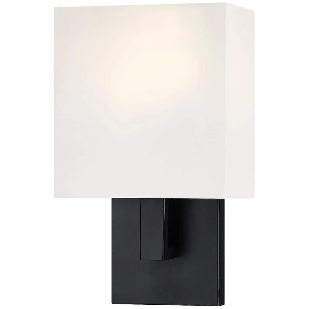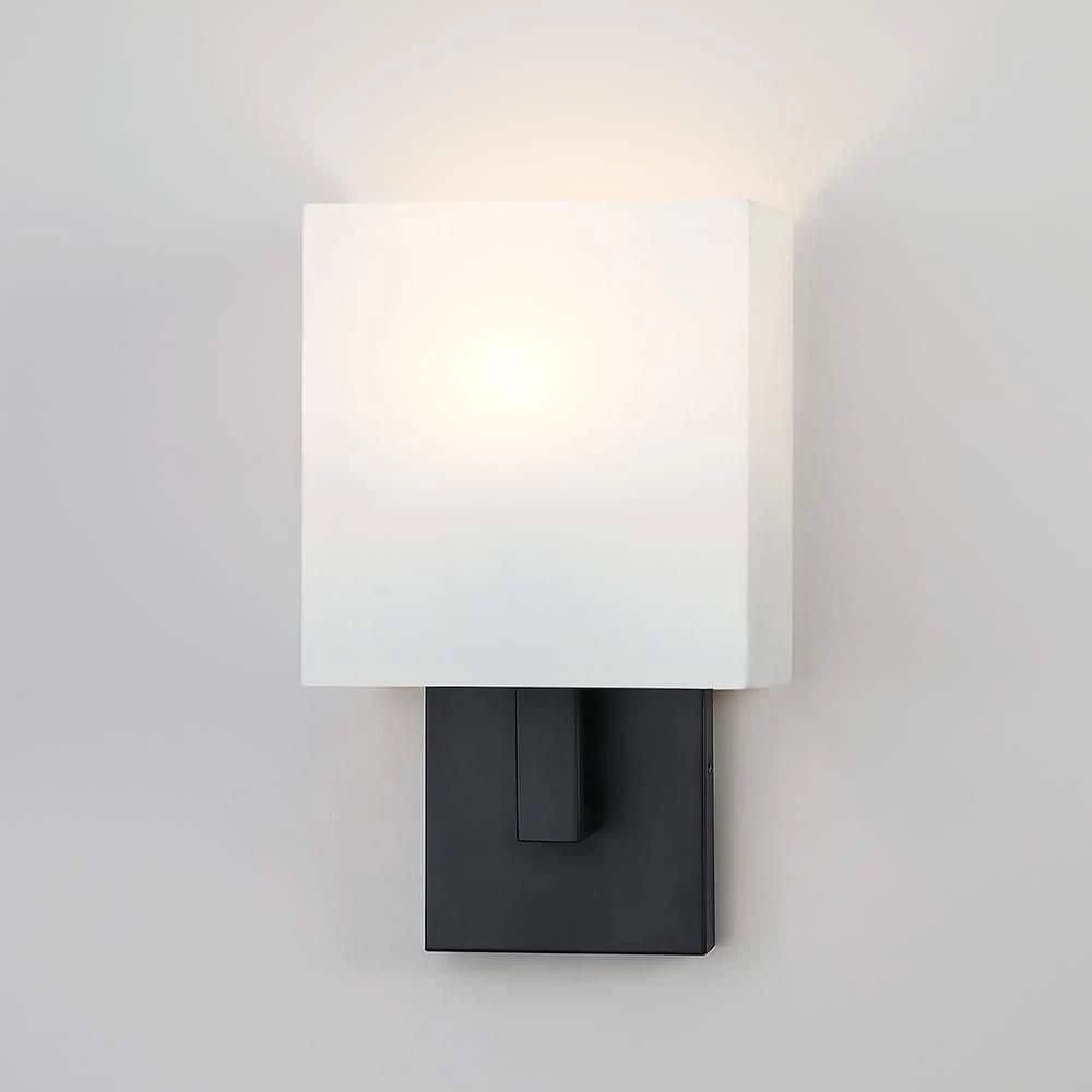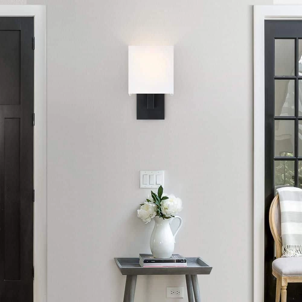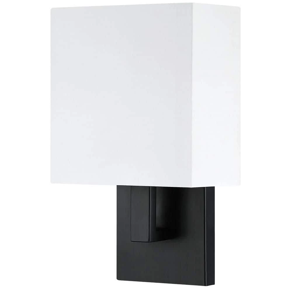 A classic design gets a contemporary makeover, this hotel style1-light wall sconce is perfect for brightening your hallway, corridor, bathroom or bedside. It’s crafted of metal in matte black finish and features a armed rectangle backplate. A white fabric hardback shade ensconces one LED bulb (not included) to diffuse soft light and create ambience in your space. Dimmer switch compatible to set the mood.