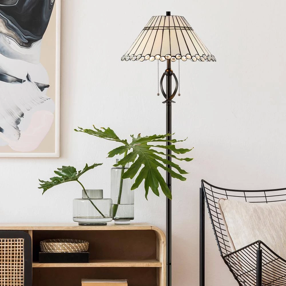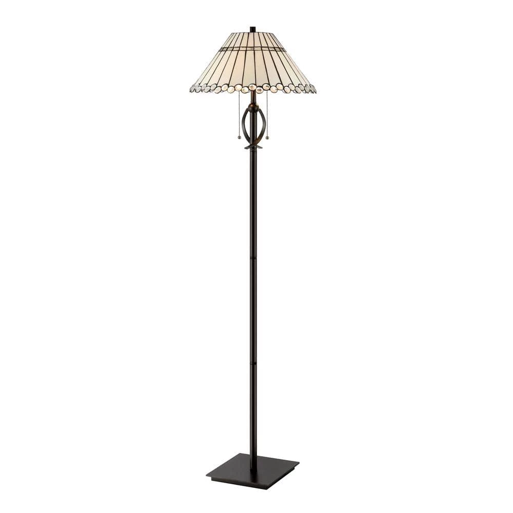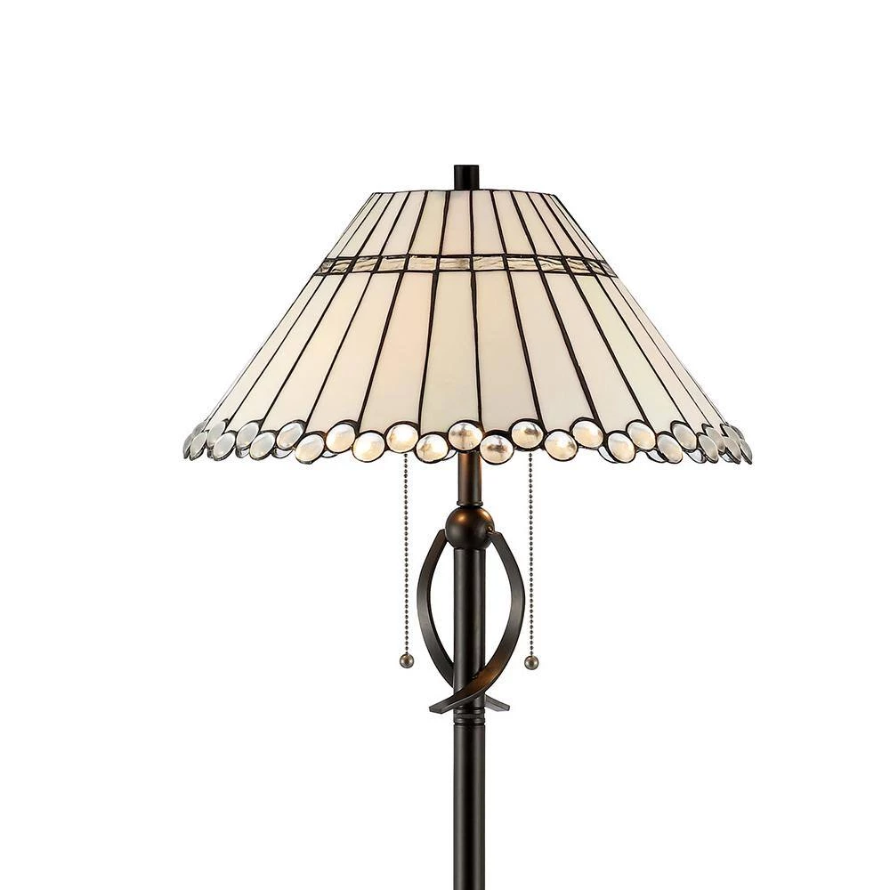 The Cordelia Floor Lamp features a monochromatic tiffany art glass shade and a contemporary metal tiffany bronze base. Clear glass gems in the shade add extra sparkle when illuminated. The Cordelia Floor Lamp is an ideal lamp for any room’s decor and will provide you with years of reliable and artistic lighting.