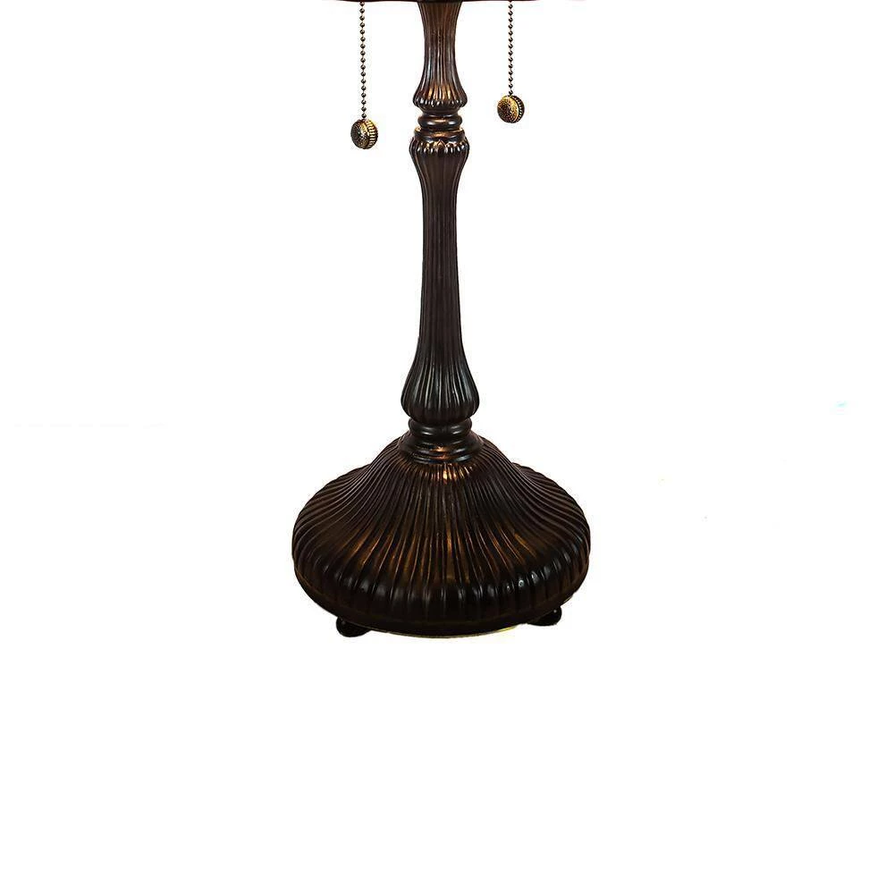 Our Daffodil Tiffany Table Lamp is a beautiful combination of saturated color and texture that ensures it will be the focal point in any room in which it is displayed. The fixture features a generously sized conical shade with a background of green & blue art glass set in a slate pattern. A large row of Tiffany’s iconic daffodil is set around the shade, each features blush pink flowers with detailed deep blue and green stems. The cast metal base is finished in Antique Bronze and features the ball-footed pedestal. Ideal for end tables and nightstands, our Daffodil Table Lamp is built to last to provide you with a lifetime of artistically reliable lighting.