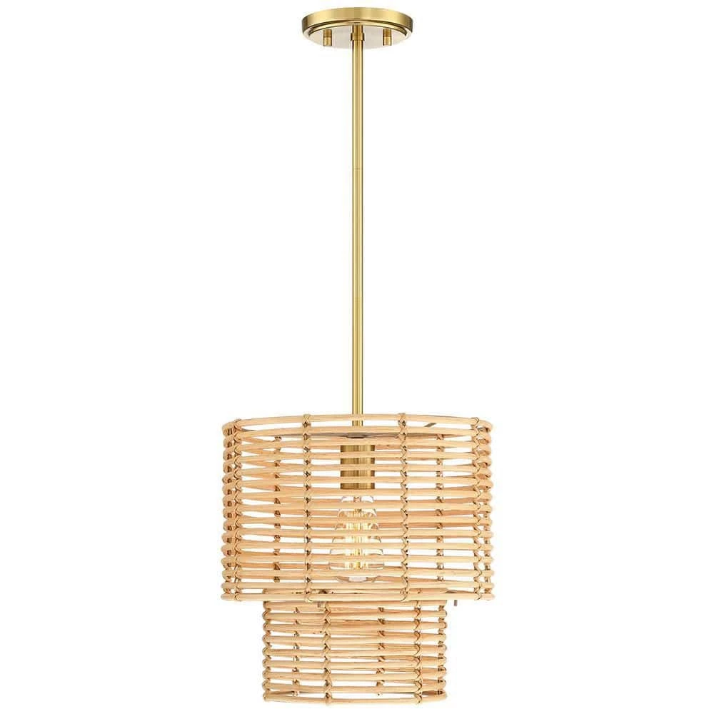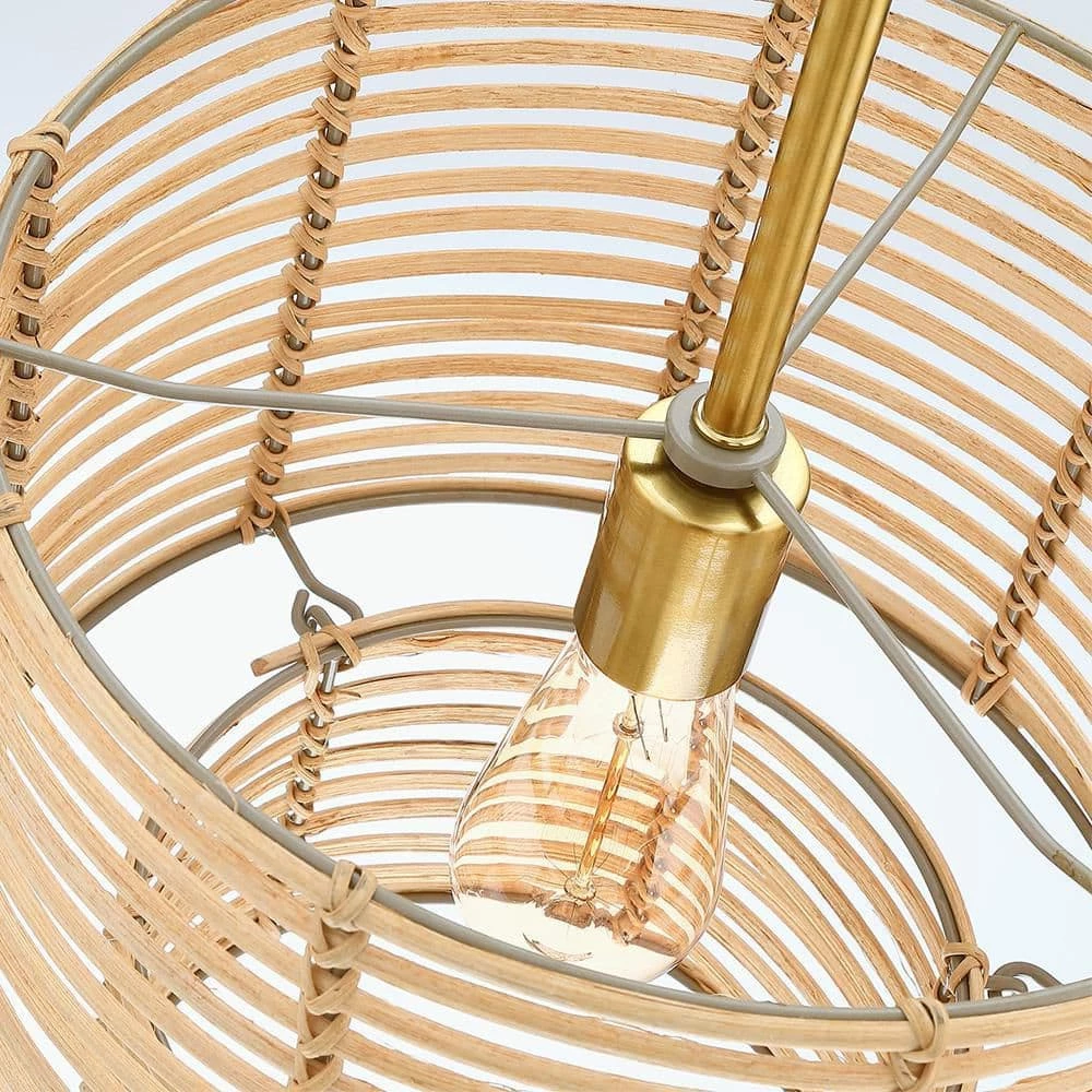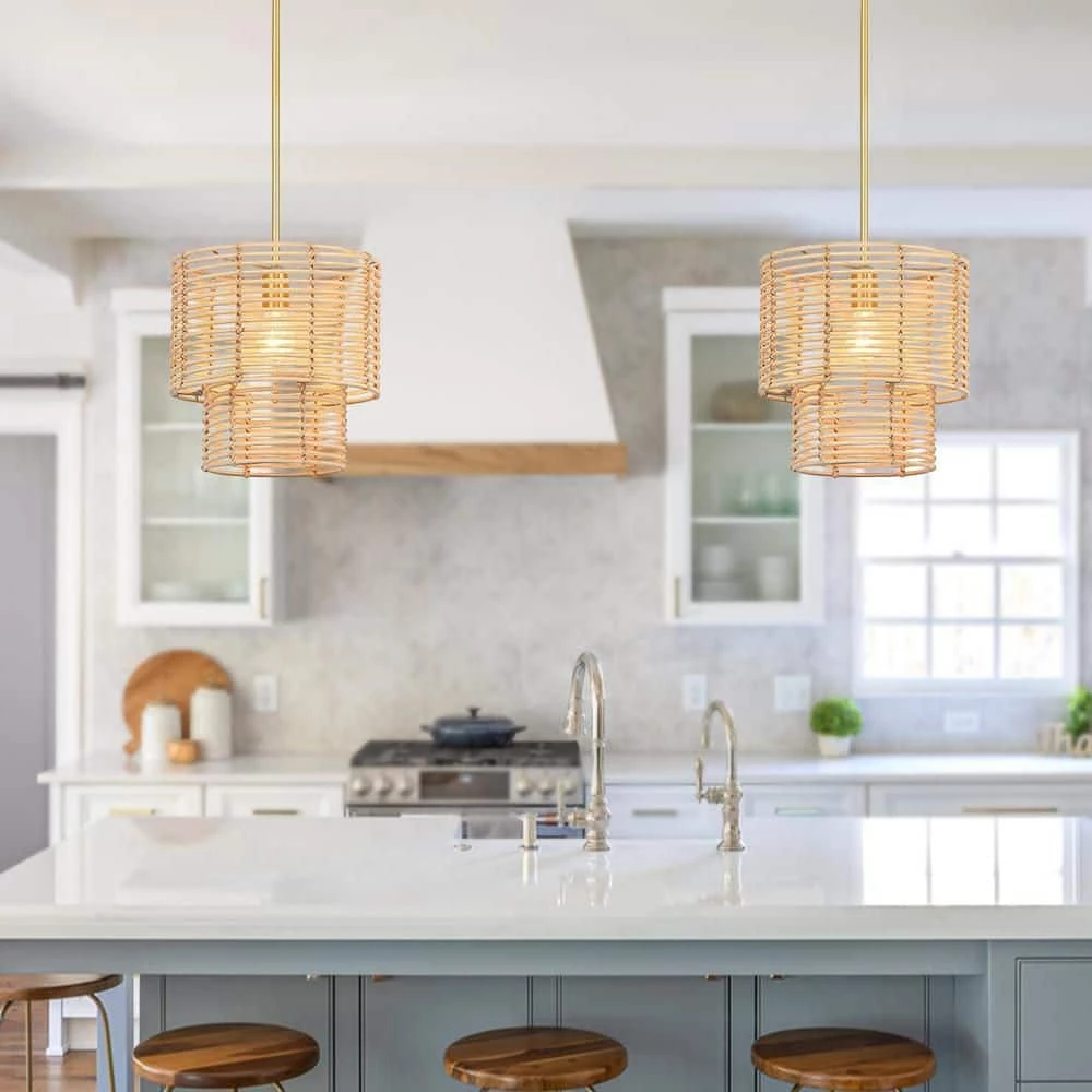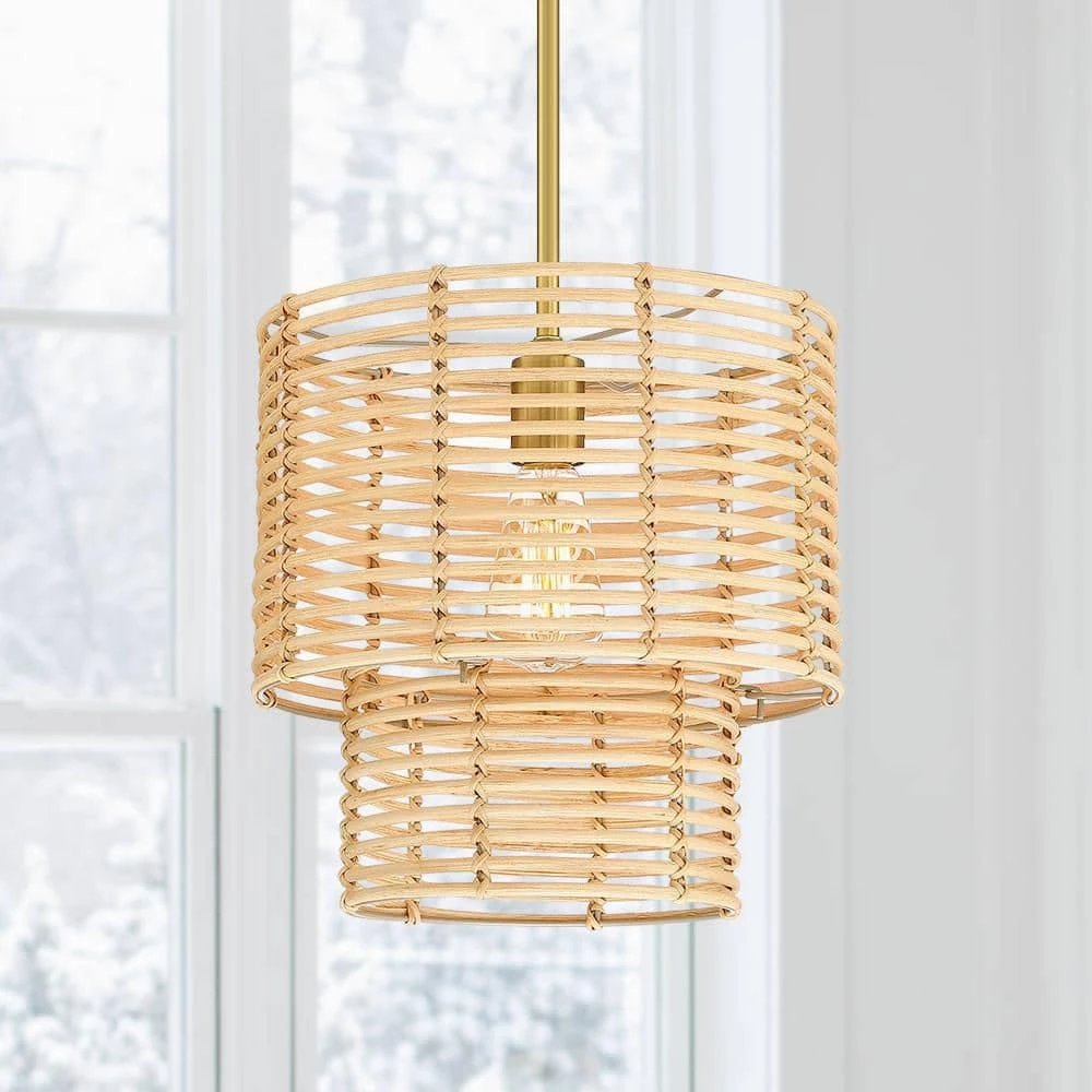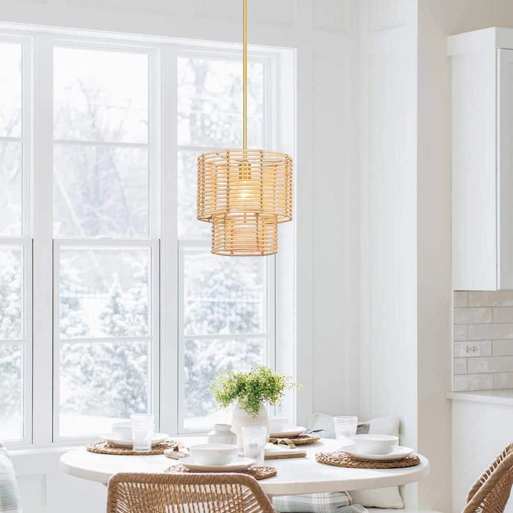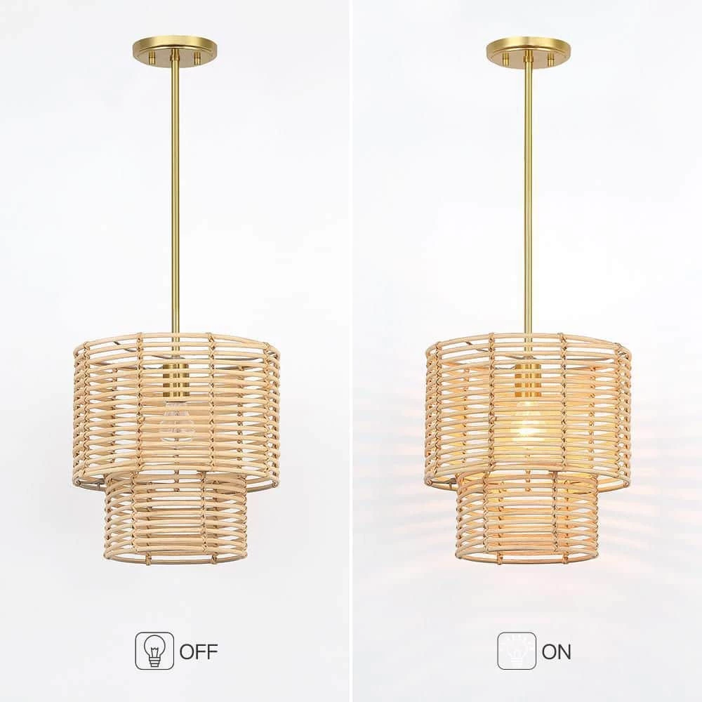 Make a style statement with the coastal-inspired organic rattan ceiling pendant lighting. It features brass/gold hardware and hand-woven shade which is crafted of rattan/wicker. Each piece creates a play of light and subtle shadow in a room, adding an inviting ambience. This collection can work with a variety of boho decors and even work in homes with coastal or bohemian styling. It is an ideal selection for over your kitchen island, hall way, foyer or suspended above your kitchen breakfast bar, dinning room table or bedrooms of any kind.