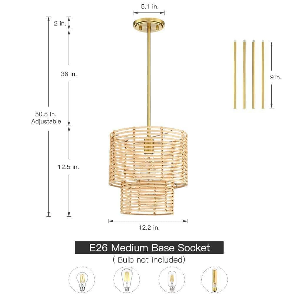 - Fixture dimensions: 12.2 in. W x 50.5 in. H (maximum hanging length)