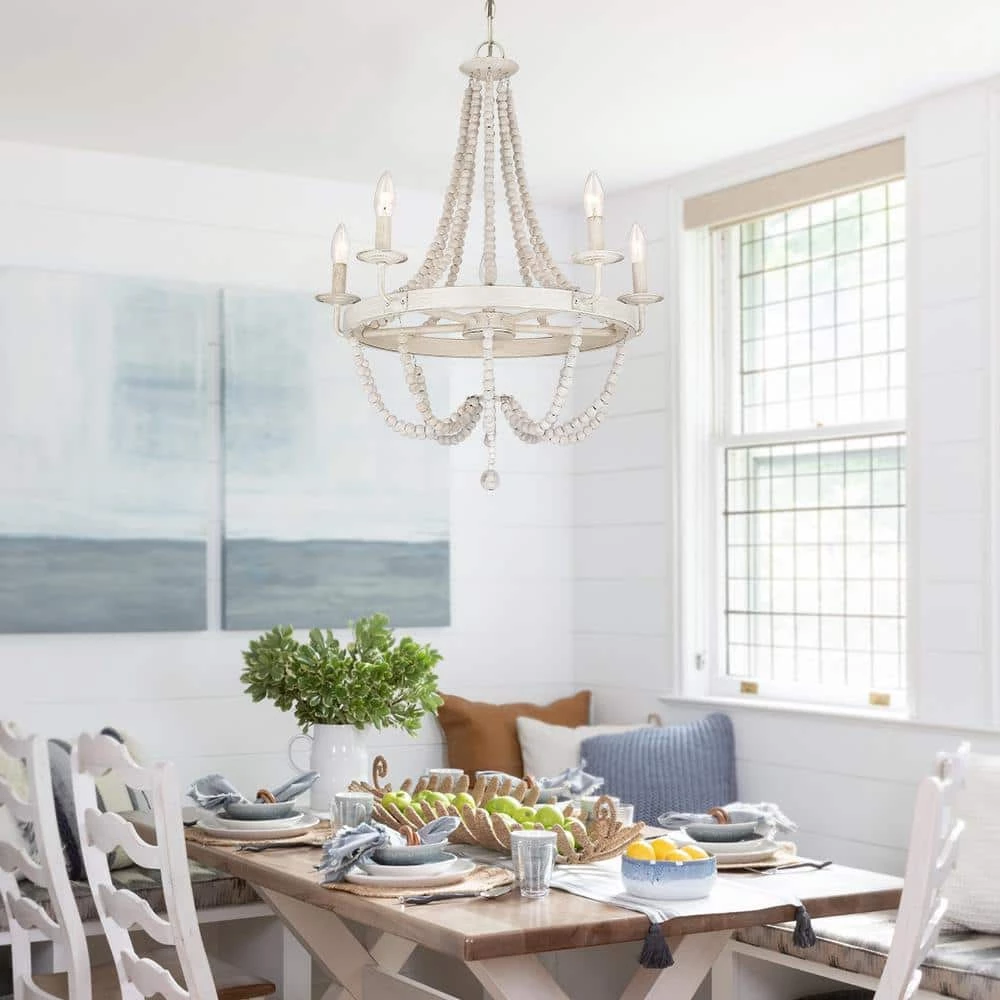 - Wood beaded chandelier is great for Casual, Bohemian, Eclectic, Nautical, Coastal, Rustic and Farmhouse style decor