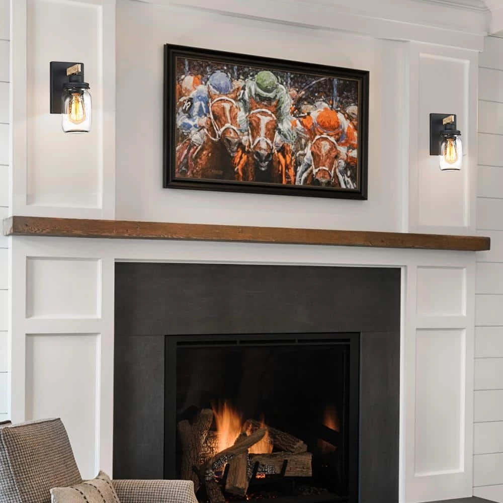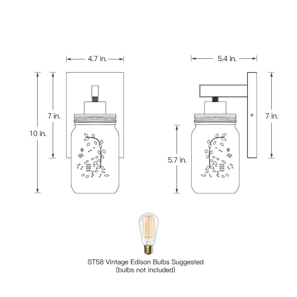 The rustic black 1-light bathroom vanity light fixture by TRUE FINE is inspired from the modern farmhouse trend that beautifully blends rustic, industrial and traditional elements. The rectangular backplate in powder-coated matte black are tied together with a distressed wood finish bar. Its 1-light is encased in clear glass mason jar glass shade that are embellished with a subtle fruit-inspired motif and gently diffuse the light with a beautiful pattern. you could have it on each side of your bathroom mirror, or as a decorative wall sconce beside your bed in your bedroom. Also, it has a matching 3-Light vanity wall sconce which sold separately. You could choose this 1-Light or 3-Light to fit your decor the best. Vintage style Edison bulbs (not included) are recommended farmhouse-industrial style light fixture which is an ideal selection for hallways, vanity, powder room, bathroom, dressing room, bedroom, dining room and anywhere you like.