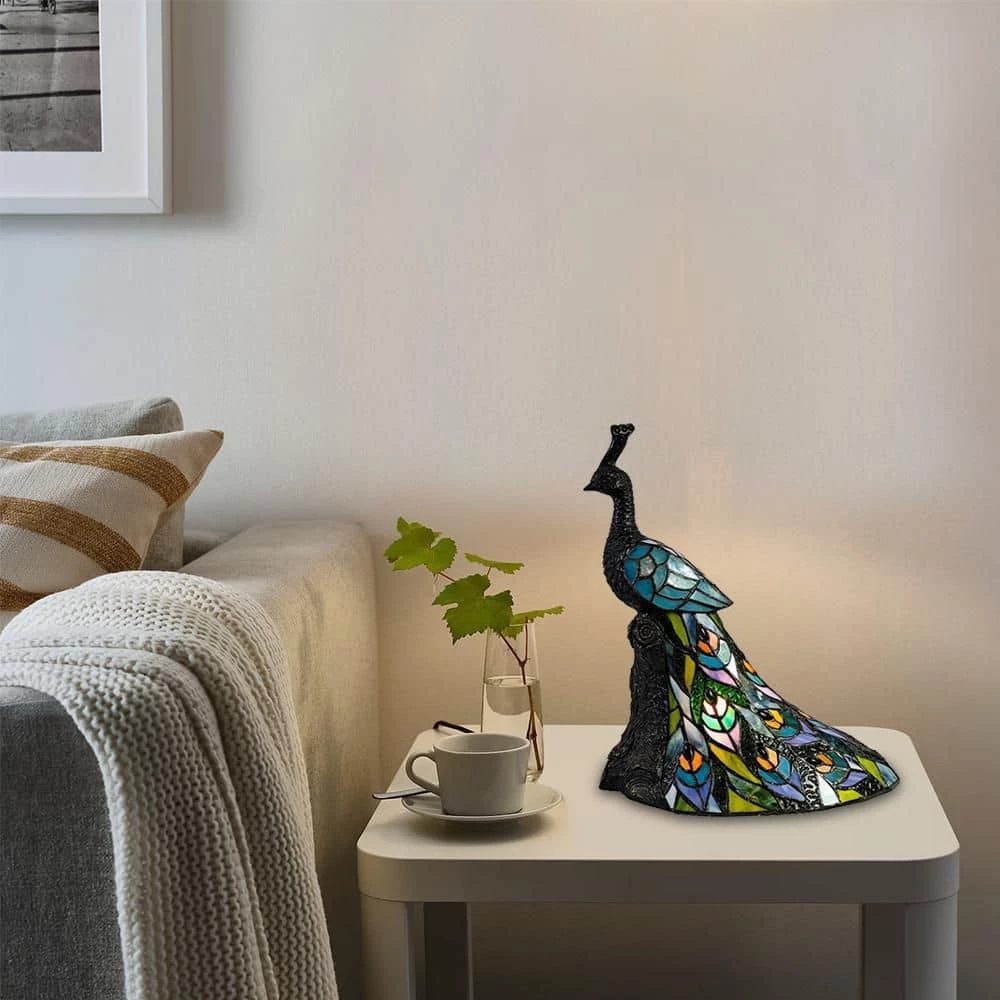 - You’ll be “proud as a peacock” to display this Tiffany-style art glass lamp in your home