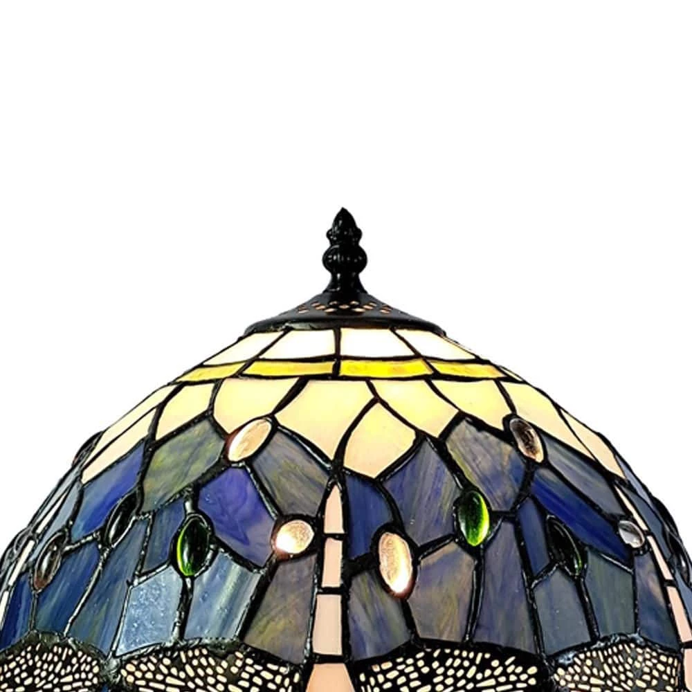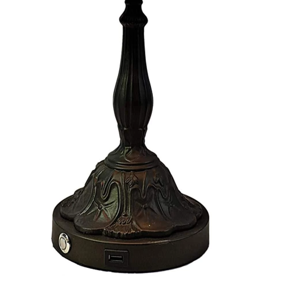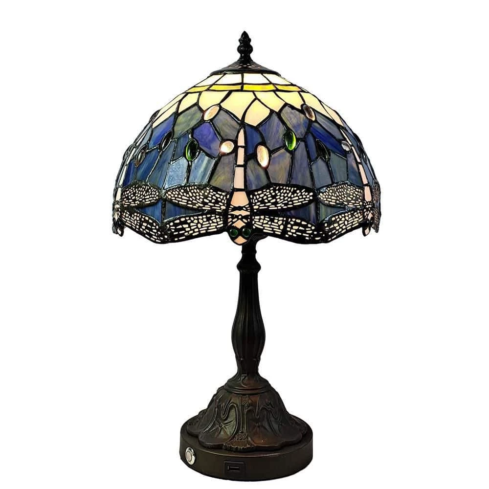 As a leader in home design trends, we pride ourselves in combining vintage craftsmanship with the latest technology. We proudly present our new Jordan Tiffany lamps with integrated USB charging port designed to provide modern convenience with timeless beauty. Our Jordan Tiffany lamp features a dome shade with deep blue with warm beige background & accented with yellow banding on top. We added blue and amber glass gems throughout for added sparkle and shine. The resin base, finished in Tiffany Bronze features a USB charging port in the pedestal and on/off touch switch for convenience. A perfect choice on desks, end tables or nightstands, our Jordan Tiffany Lamp also makes a wonderful gift for any occasion.