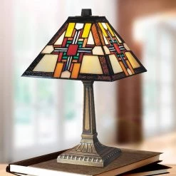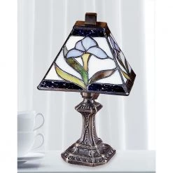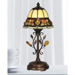 15 in. Antique Bronze Rose Bell Accent Lamp with Hand Painted Glass Shade by Dale Tiffany