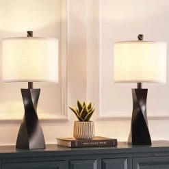 22 .75 in. Black Table Lamp with USB Port and Nightlight, LED Bulbs Included (Set of 2) by TRUE FINE