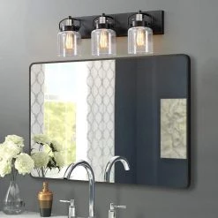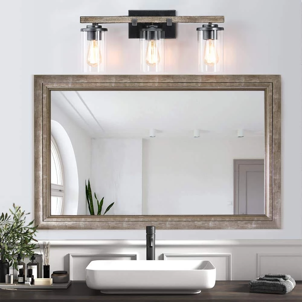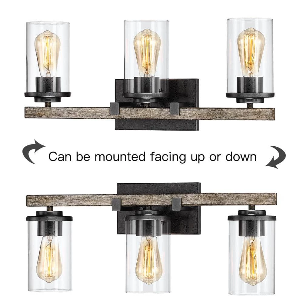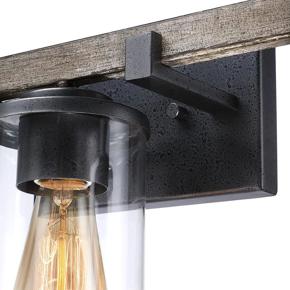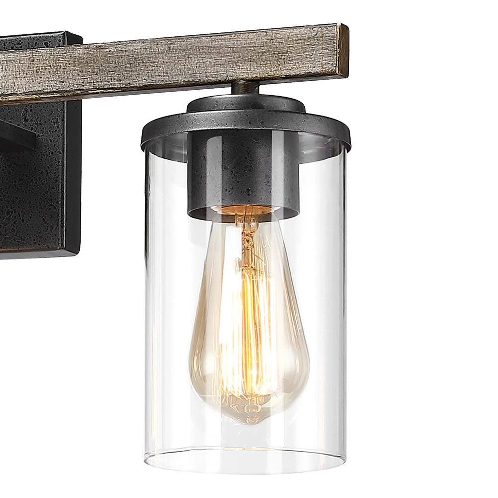The Madison collection has a unique blend of industrial with modern rustic and traditional elements. The natural iron and distressed faux wood finish are combined flawlessly to make this a very interesting light. Add the clear glass and you get an attractive piece that is sure to impress. The Madison collection is perfect for any urban decor or to help you create the look of city living. Vintage style Edison bulbs (ST58, not included) are recommended for this farmhouse-industrial style fixture which is an ideal selection for vanity, powder room, bathroom etc.