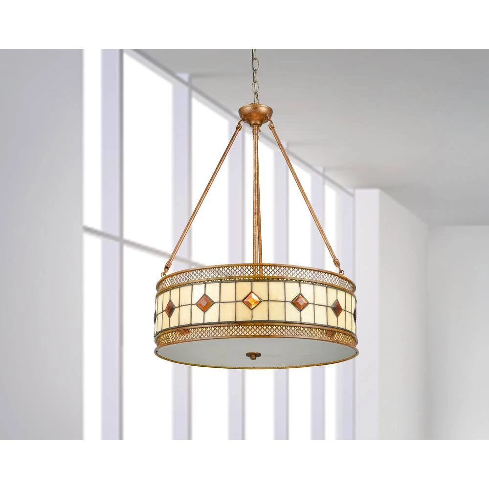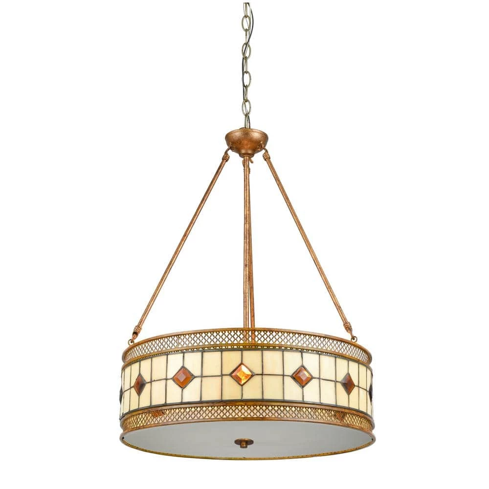 The Minerals Pendant is the perfect fixture for the serious Tiffany enthusiast. The shade colors of light amber and beige accented with amber geometric shapes blend perfectly with a rustic bronze metal mesh design fixture. The unique cylinder shape of the shade is accompanied by a sleek metal ceiling canopy. A conversation starter in any decor, our Minerals pendant will provide your family with a lifetime of beauty and reliability. Dale Tiffany uses high quality hand-rolled art glass and the same high quality copper foil and hand leading technique originally developed by Louis Comfort Tiffany more than 100-years ago.