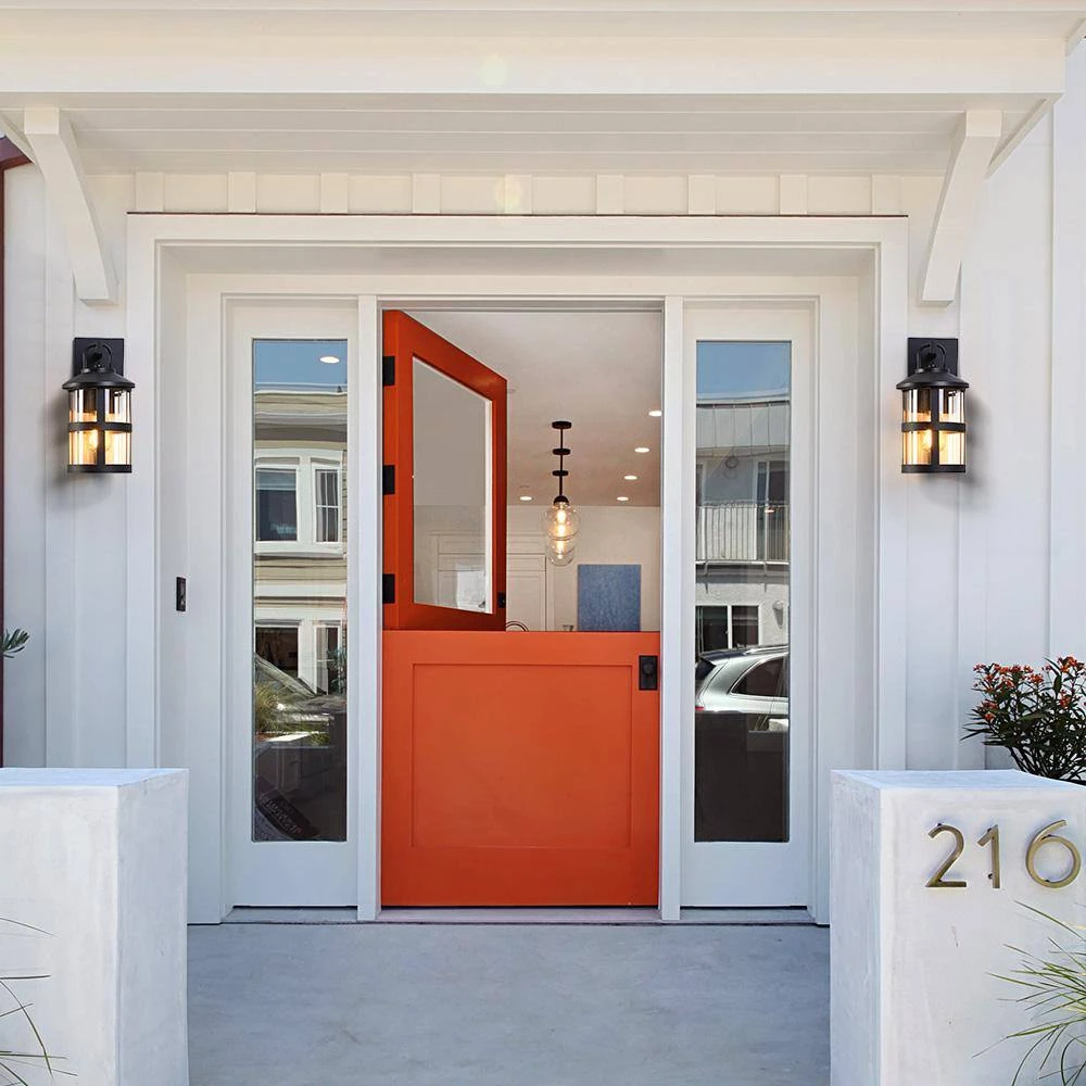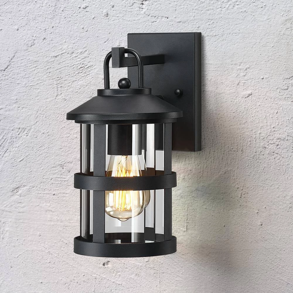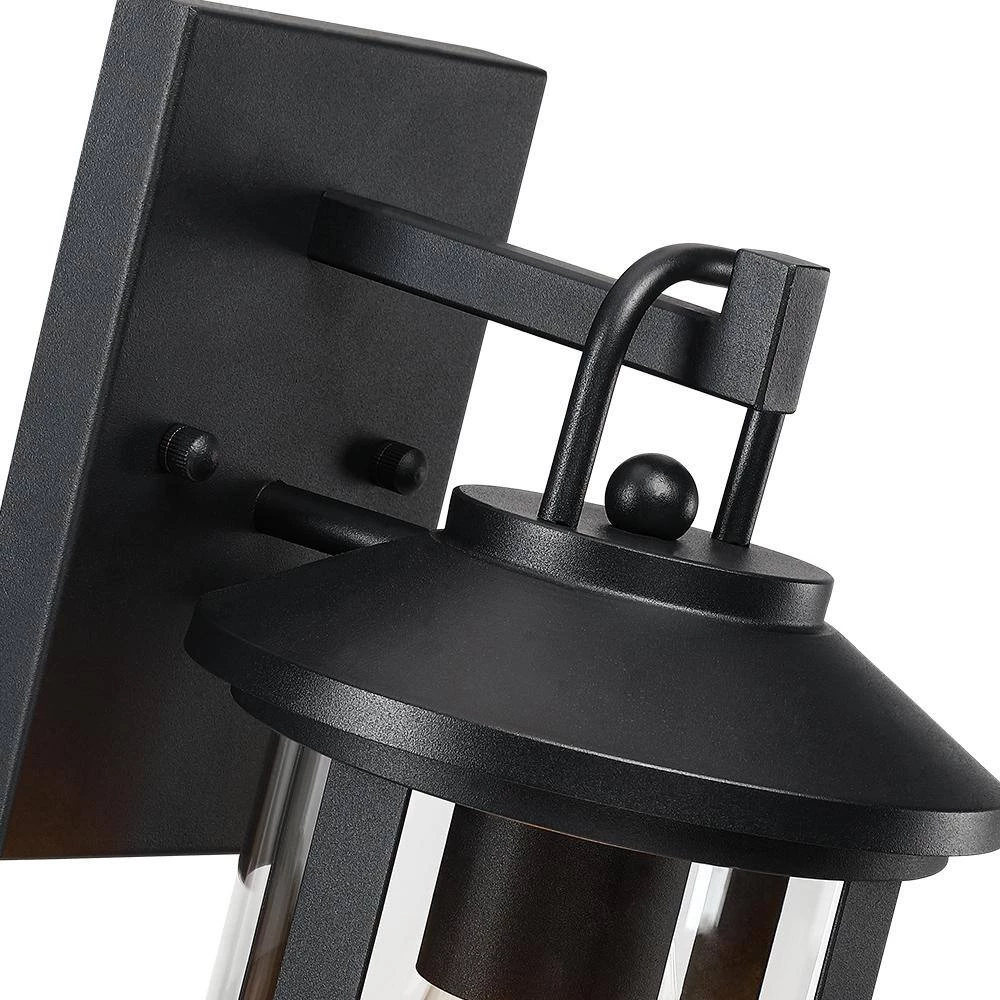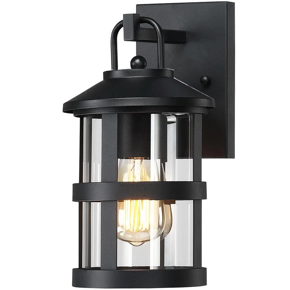 This modern exterior lantern lighting fixture features a stunning clear glass cylinder and a lantern style powder-coated black body as it rests upon a strong arm connected to a rectangular backplate. Pairing the traditional outdoor wall light with a vintage bulb(not included) is recommended to fully illuminate the glass which spreads a warm and inviting glow. Ideal for Front Porch, Patio, Garage, Deck, Balcony etc.