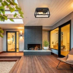 2-Light Black Outdoor Flush Mount Ceiling Light with Clear Water Glass by TRUE FINE