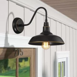 1-Light Black Farmhouse Non Solar Outdoor Wall Lantern Sconce with Clear Glass Shade by TRUE FINE