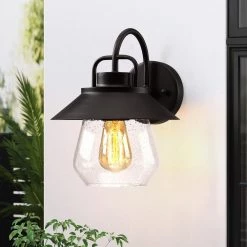 Cottage 1-Light Black Hardwired Outdoor Wall Lantern Sconce with Seeded Glass by TRUE FINE