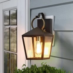 Blakely 1-Light Black Hardwired Outdoor Wall Lantern Sconce with Brass Accents by TRUE FINE
