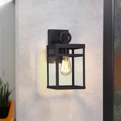 Manor 1-Light Black Hardwired Outdoor Wall Lantern Sconce with Clear Glass by TRUE FINE