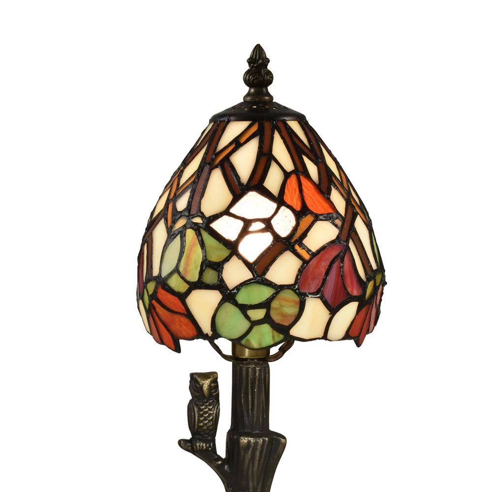 Our delightful Owl Garden Tiffany Accent Lamp is a pleasant addition to any room’s decor. The cheerful fixture depicts an owl sitting in a floral tree for a look that will delight both the young and young at heart. The metal base is finished in Antique Bronze and shows a chipper owl perched upon a branch, The shade is crafted of art glass in a floral pattern in pink, red, green, white and brown. An easy way to add a bright pop of color when tucked away on a bookcase or curio shelf, our Owl Garden Tiffany Accent Lamp also makes an ideal housewarming gift whose recipient will proudly display for many years to come.