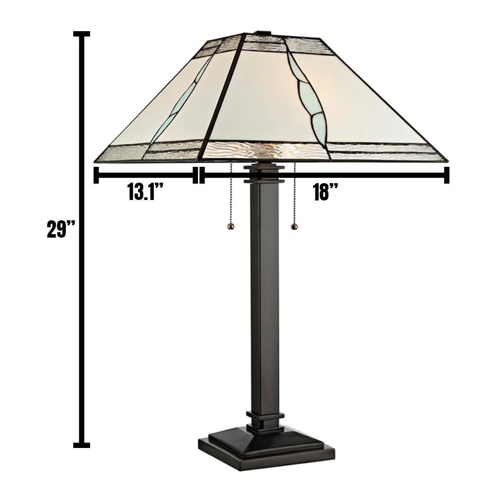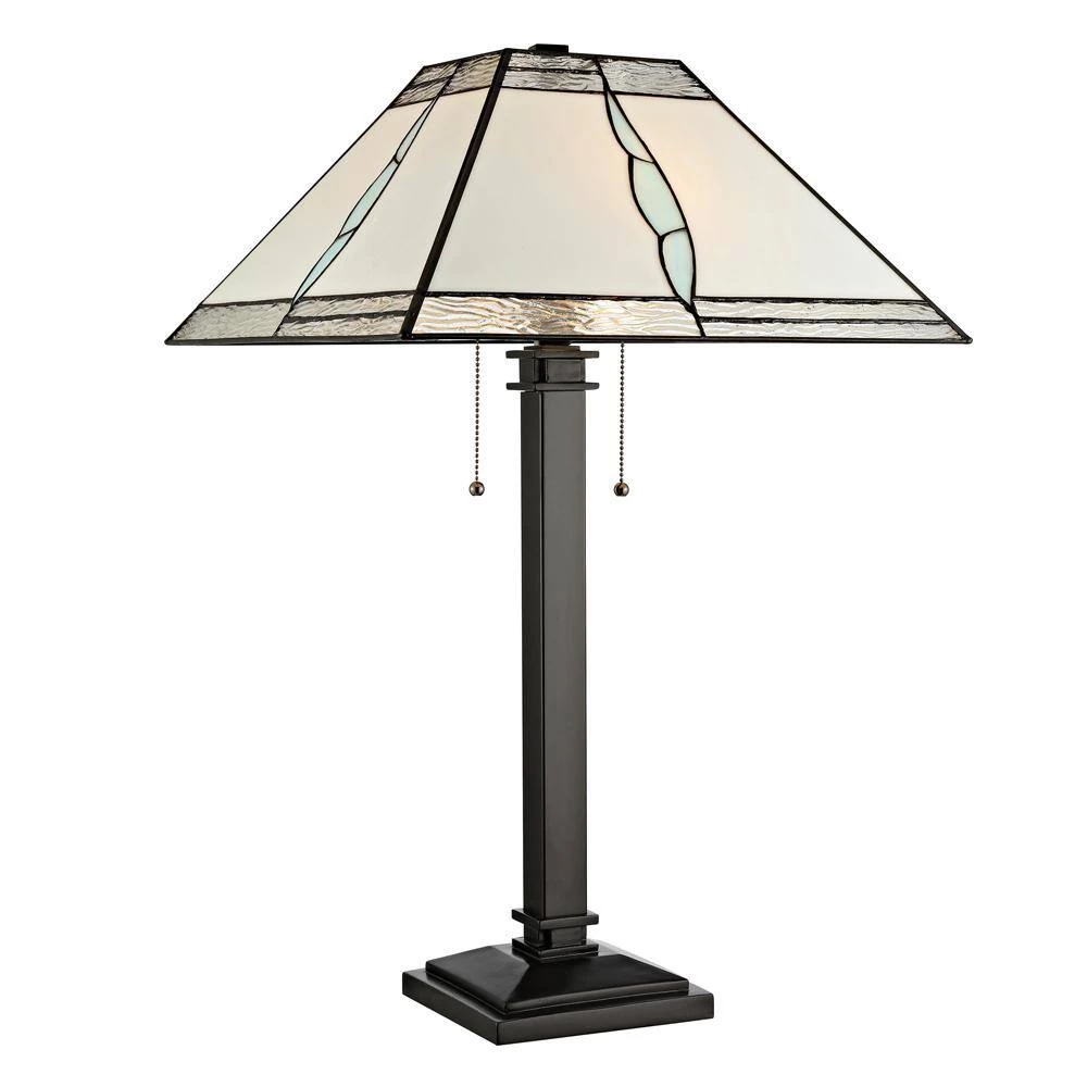 The Parkdale Table Lamp is inspired by the Arts and Crafts design. The tiffany shade features iridescent blue glass that adds more vibrant color when lit. The square tiffany bronze finished base provides additional stability. This is an ideal lighting solution for any room’s decor. An excellent solution next to a bedside or favorite reading chair, the Parkdale Table Lamp will provide your family with many years of reliable, stylish service.