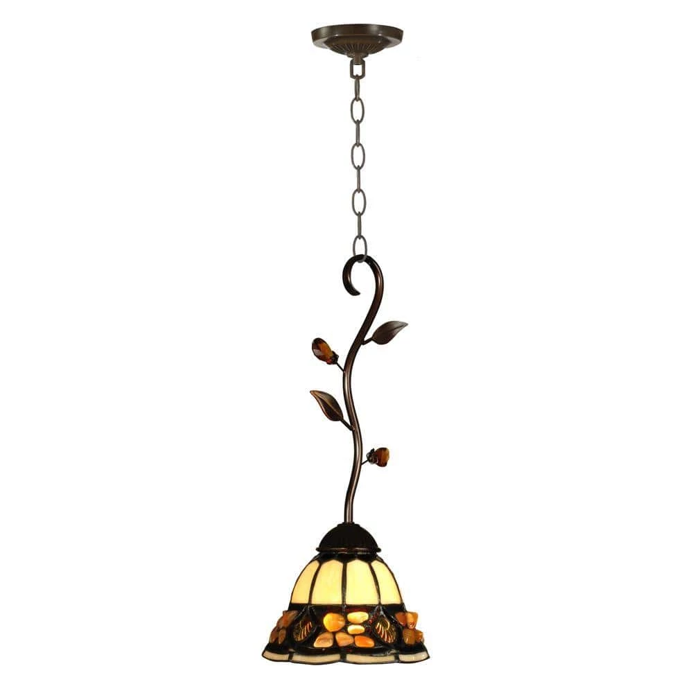 - Shade is crafted of hand rolled art glass