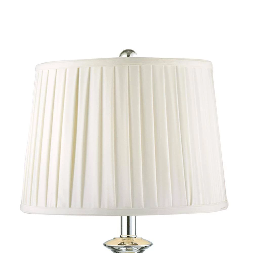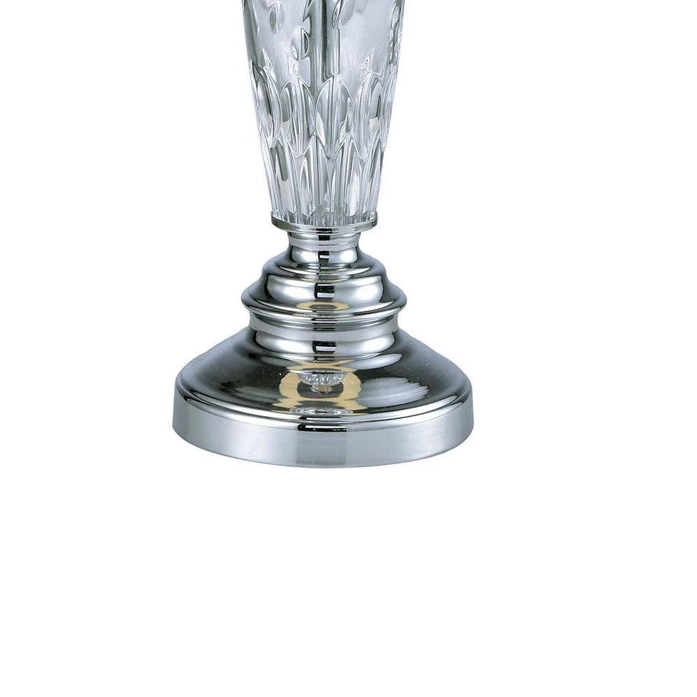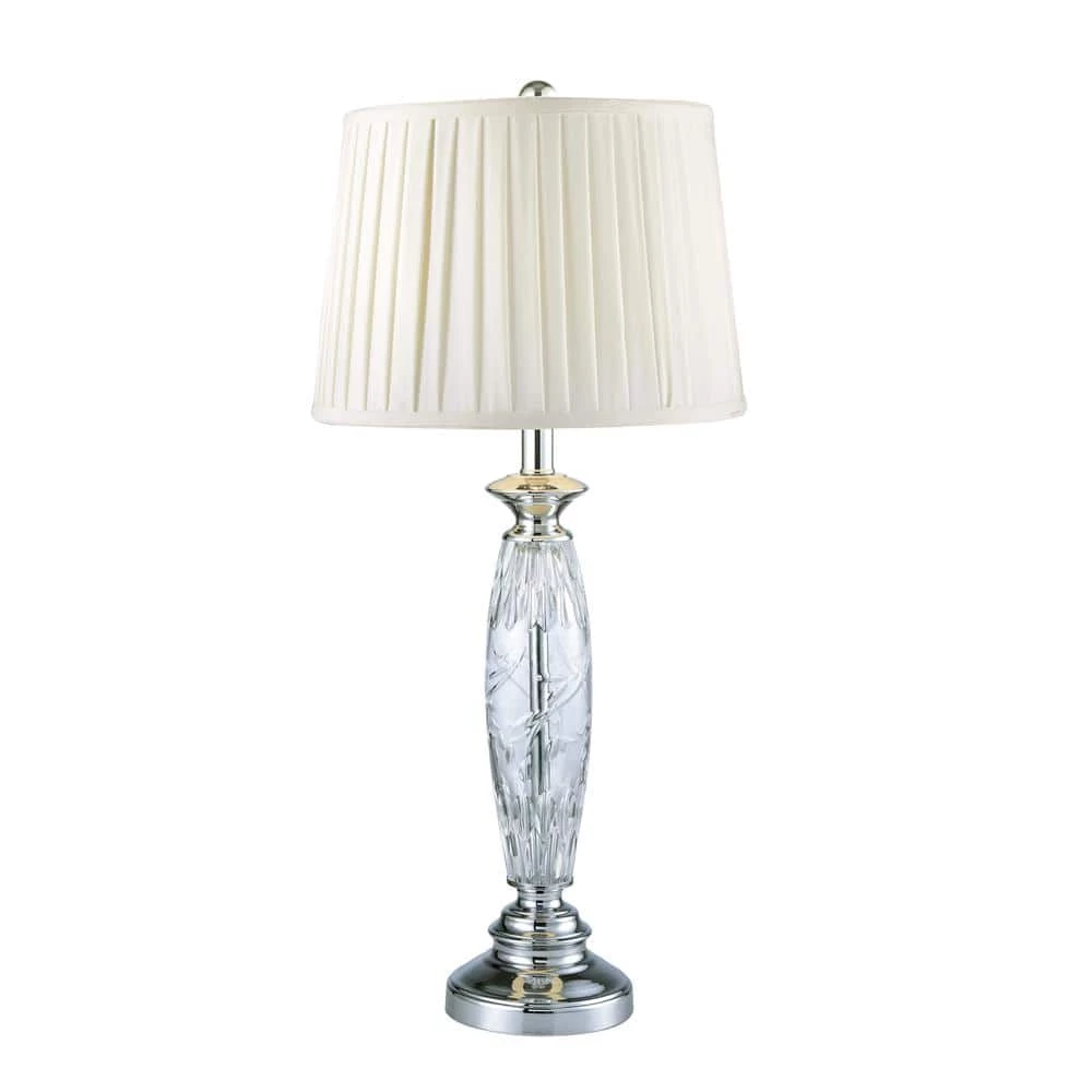 The sleek, slim lines and sumptuous 24% lead crystal of our Powis 24% Lead Crystal Table Lamp is an excellent addition to any decor. The tall fixture is appointed with a gently flared cylinder of 24% lead crystal on the center column. The crystal has been faceted with a wide crosshatch pattern at its center and features a more intense faceting at the top and bottom for contrast and extra sparkle. The finely cast pedestal and matching vase cap are finished in cool Polished Chrome. The fixture is topped with a simple fabric drum shade and crystal finial that showcases the beauty of the crystal. Our Powis 24% Lead Crystal Table Lamp will add an instant decorator’s touch to any room in your home or office that you will be delighted to display for many years.