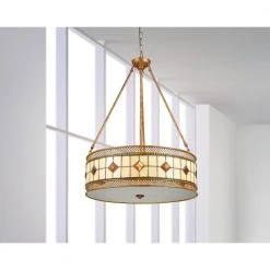 Ackley 5-Light Polished Brass Shaded Pendant Light by Dale Tiffany