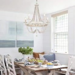 Dione 23 in. 5-Light Wood Bead Antique White Bohemian Candlestick Chandelier by TRUE FINE