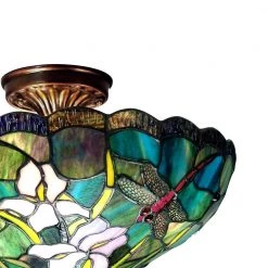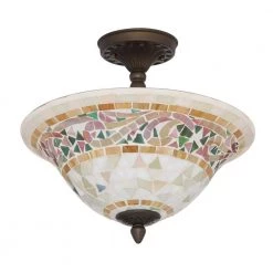 Johanna Mosaic 3-Light Antique Brass Finish Semi-Flush Mount by Dale Tiffany
