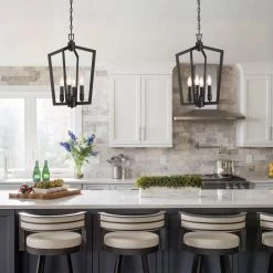 Perch 14 in. 4-Light Black Candlestick Pendant Chandelier Caged Farmhouse by TRUE FINE