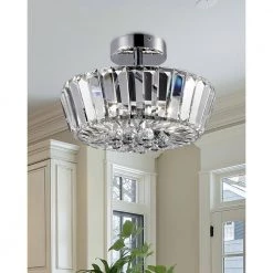 15 in. 3-Light Wood Tone Modern Farmhouse Semi-Flush Mount Ceiling Light by TRUE FINE