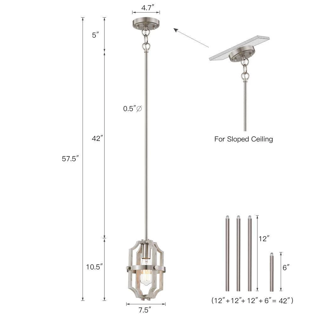 - Fixture dimensions: 7.5 in. W x 7.5 in. D x 57.5 in. H (maximum hanging length)
