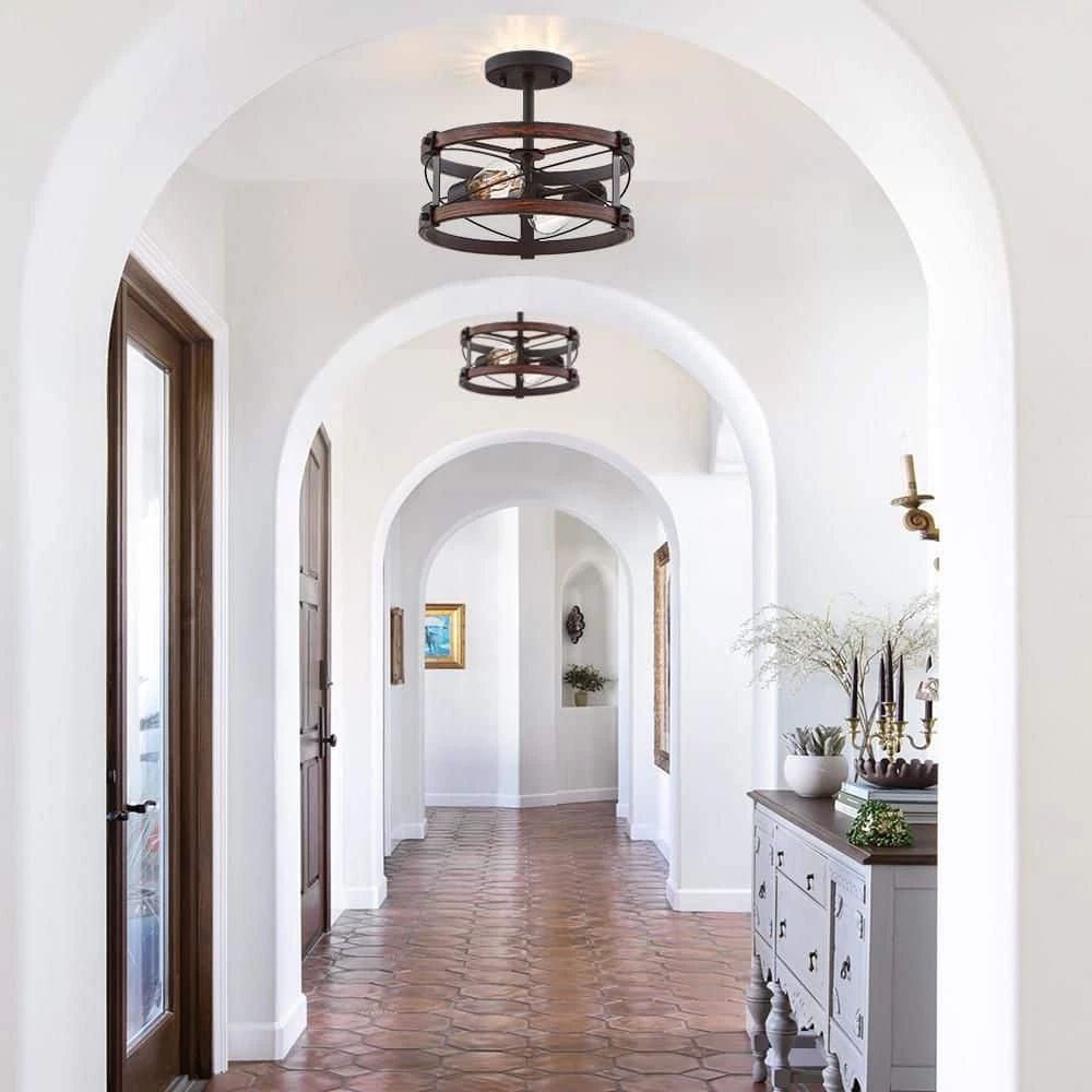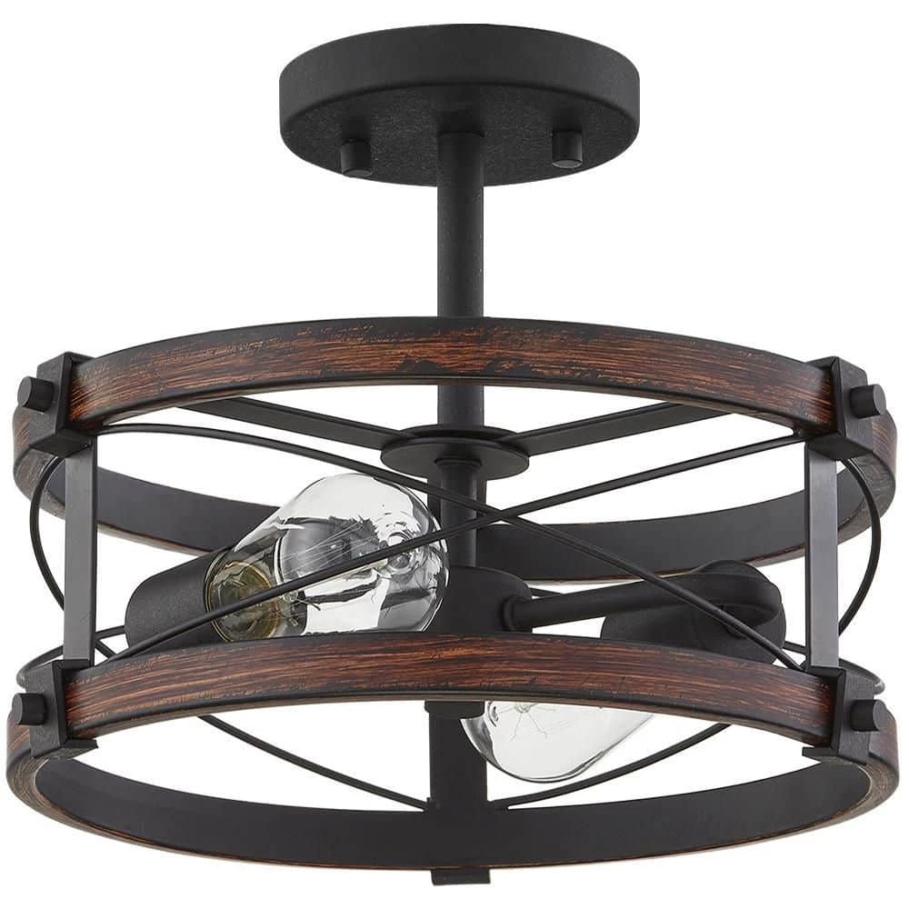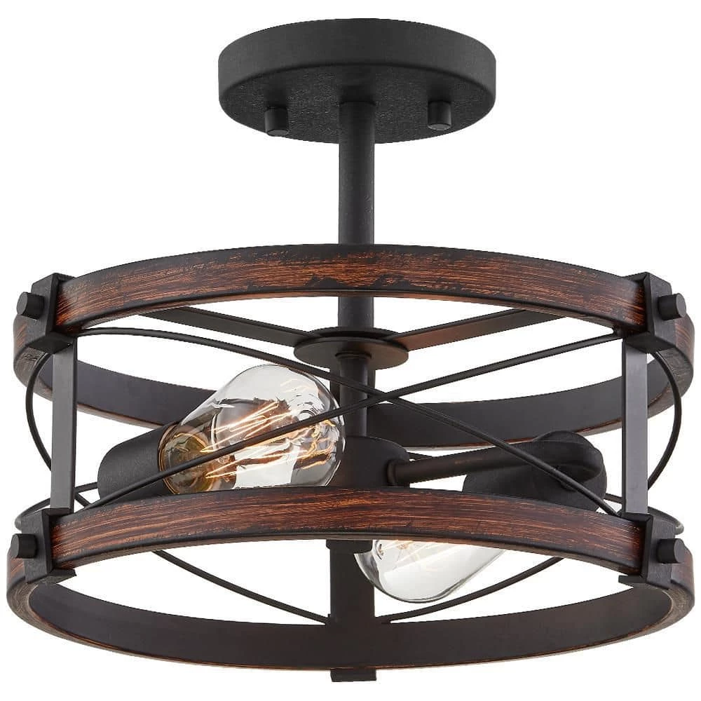 The open cage ceiling light design has a unique blend of industrial with vintage and rustic elements. 2-tone colors–natural iron in distressed black and faux rustic wood finish are combined flawlessly to make this a very interesting light. It’s perfect for any urban decor or to help you create the look of city living. Vintage style Edison bulbs (not included) are recommended for this vintage-industrial style fixture which is an ideal selection for hallway, entryway, stairway, door way or a foyer to bring warmth to a living room or bedroom.