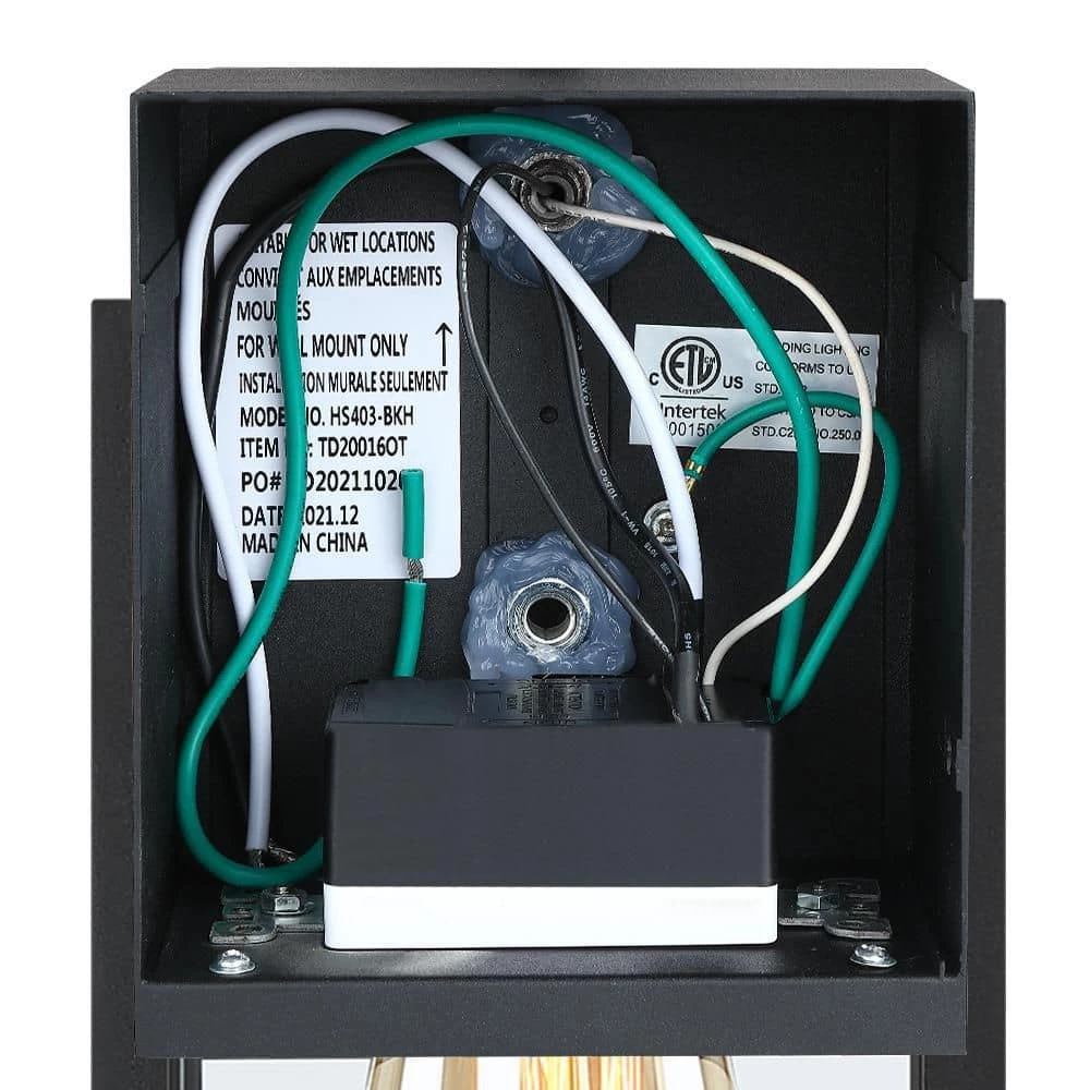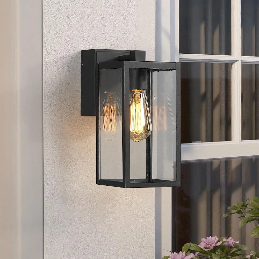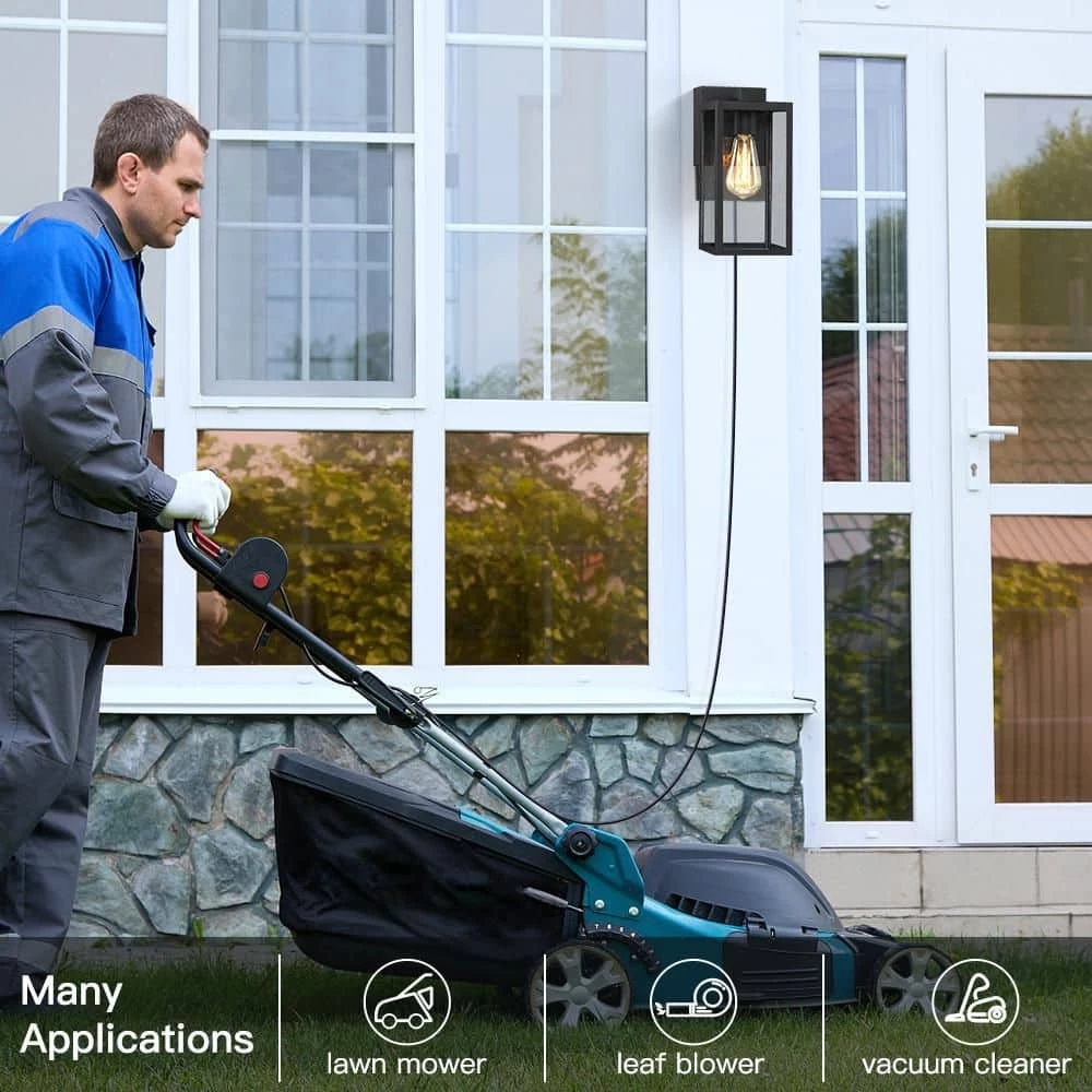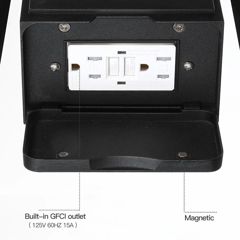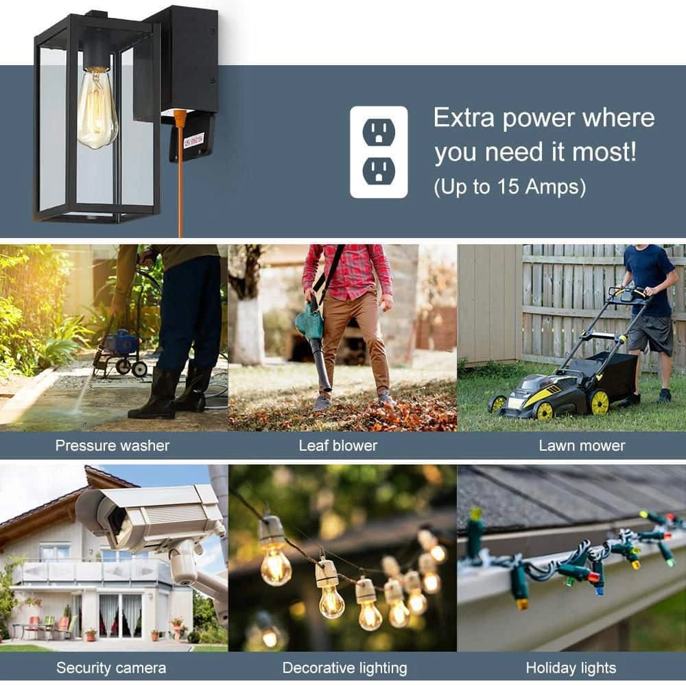 Beauty yet Functional. Traditional essence is revived in our transitional outdoor wall lantern lighting fixture which is in powder coated black finish with clear glass panels. The great feature of this outdoor wall light is concealed built-in GFCI outlets, which is UL and CUL Listed, Tamper Resistant, WR(weather resistant). It comes with 2 receptacles for easy outdoor power supply with added protection from surges, short circuits and other electrical faults, (maximum power 15 Amp and maximum load 1650-Watt), adds convenience to many outdoor applications, can be used to lawn mower, security camera, power speakers, holiday string lights and more. Simply turn on the light and plug-in your holiday decor, power tools and etc. Ideal for Front Porch, Patio, Garage, Deck, Balcony etc.