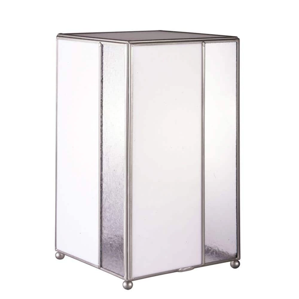 Our designer lighting can totally transform the look of a room. Make a statment with Springdale Lighting 14 in. height Whit Glue Chip Accent lamp. With its glass shade featuring Satin Nickel finish this gives a modern look to a space you wish to keep bright in your home or office.